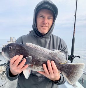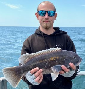 Captain Chase Eberle of Chasin’ Tides Charters had today’s feature image locked up today until the mako shark was caught, but he still gets honorable mention with this 14 pound tautog that was brought over the rail today on another awesome tog trip.