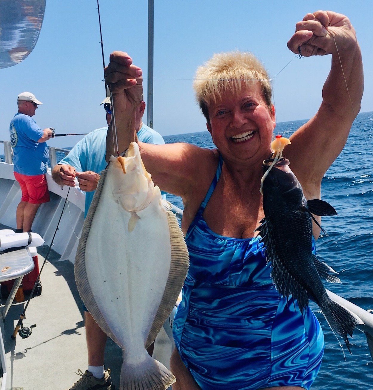 Donnie Clark of East Brunswick NJ took the pool with a flounder she caught in a keeper double with a nice cbass.
