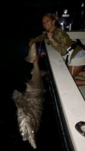 Fish in OC resident night-time shark fisherman Captain Chase Eberle of Chasin’ Tides Charters had a good night of sharking last night putting anglers on some catch and release fishing for big sand tiger sharks.