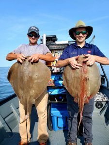 Yesterday Captain Marc Spagnola of Dusk to Dawn Bowfishing put some shooters on some great shooting for cow nosed and souther rays. Today it was the Fish in OC Deadly Double for some family flounder fishing where he he had a double header on a Deadly Double with one fish measuring out to 19″.