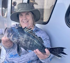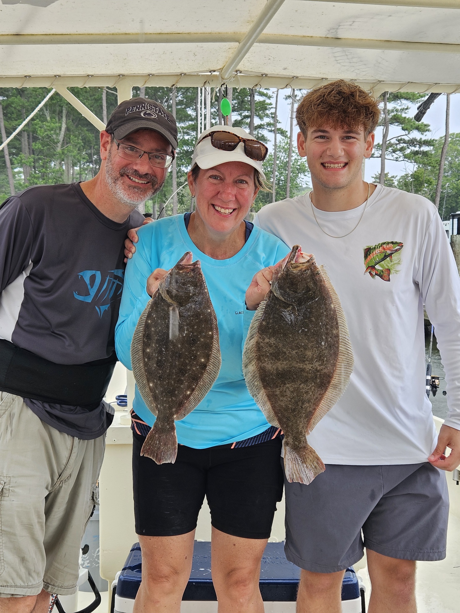 Anglers fishing on board Lucky Break with Captain Jason Mumford had a good morning with two keeper flounder and several throwbacks. They also got to see an Osprey with his catch of the day.