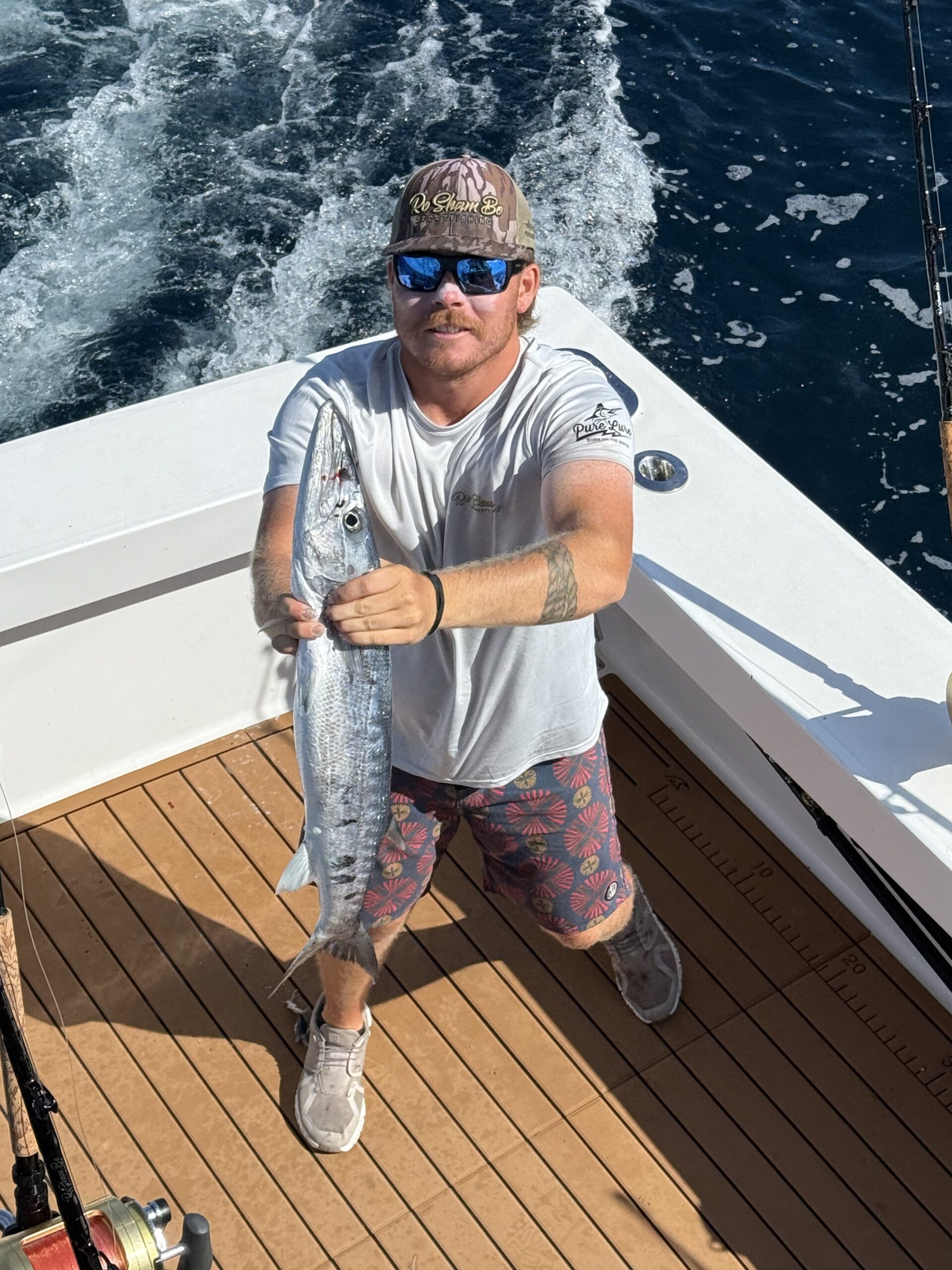 Captain Willie Zimmerman of the RoShamBo caught a fish today that we don’t see a ton of when an angler reeled this barracuda to the gunwale. Mate Joey held the fish for a quick pic before releasing it to the sea.