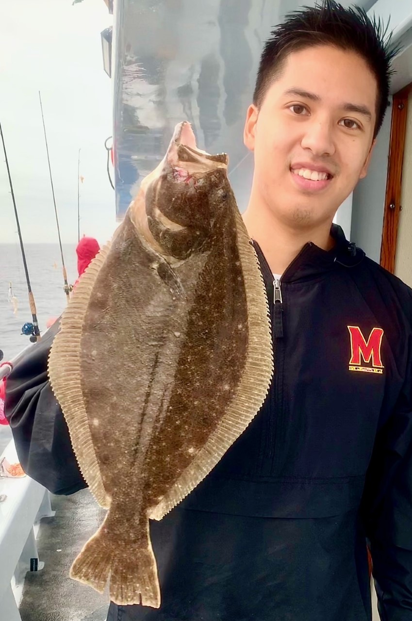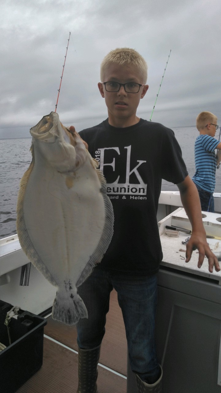 Away from the tournament Captain Kevin Twilley was running the Fish Bound this evening for a 4 hour trip when he put this young man on a big old 8 pound flounder.