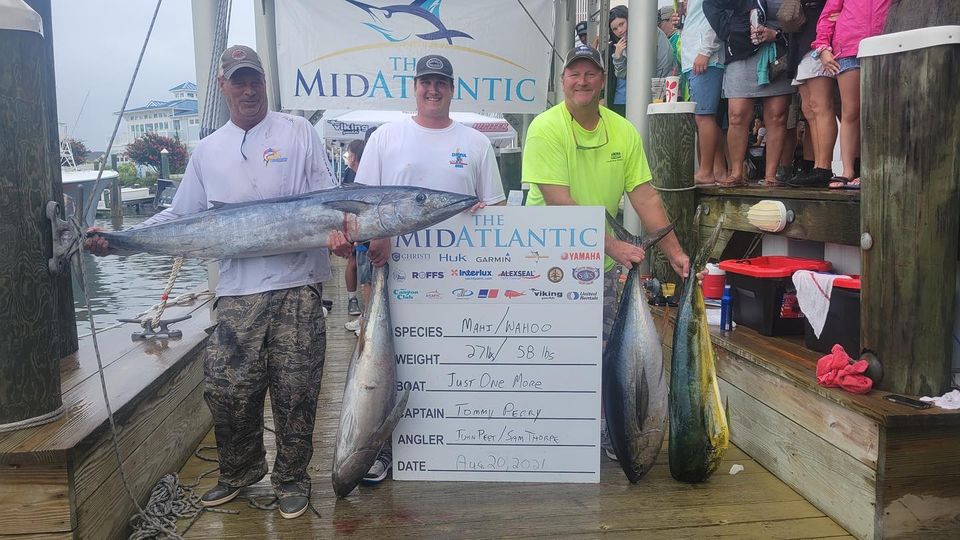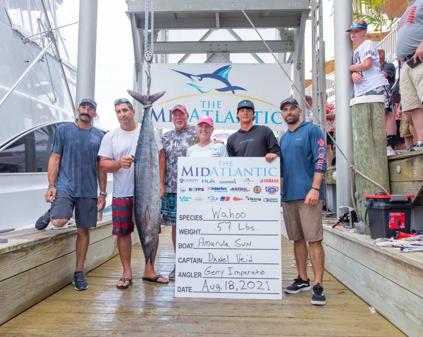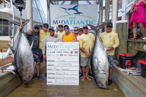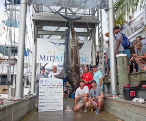 Well the 5th and final day of the MidAtlantic Tournament is in the books and just like the tournament itself, we may have seen a record breaker. We heard rumor of a “grander” blue marlin coming to the scale on board the Billfisher with Captain Jon Duffie, but didn’t know what to expect because rumors are rumors. When I saw the fish in person at Sunset Marina I knew that not only was “grander” in the equation, but so was Maryland State Record. When the big fish was hoisted on to the scale and weighmaster Frank read the weight, the crowd erupted and everyone realized that they were looking at a potential new Maryland State Record for blue marlin at 1,135 pounds! If verified this blue marlin will break the previous record of 1,062 pounds set during the White Marlin Open back in 2009. Congratulations to Captain Jon Duffie and the crew of the Billfisher on their amazing record breaking catch. Here are your final results for the 30th Anniversary of the MidAtlantic Tournament. Thanks to Dave Messick and Sunset Marina for the pics!