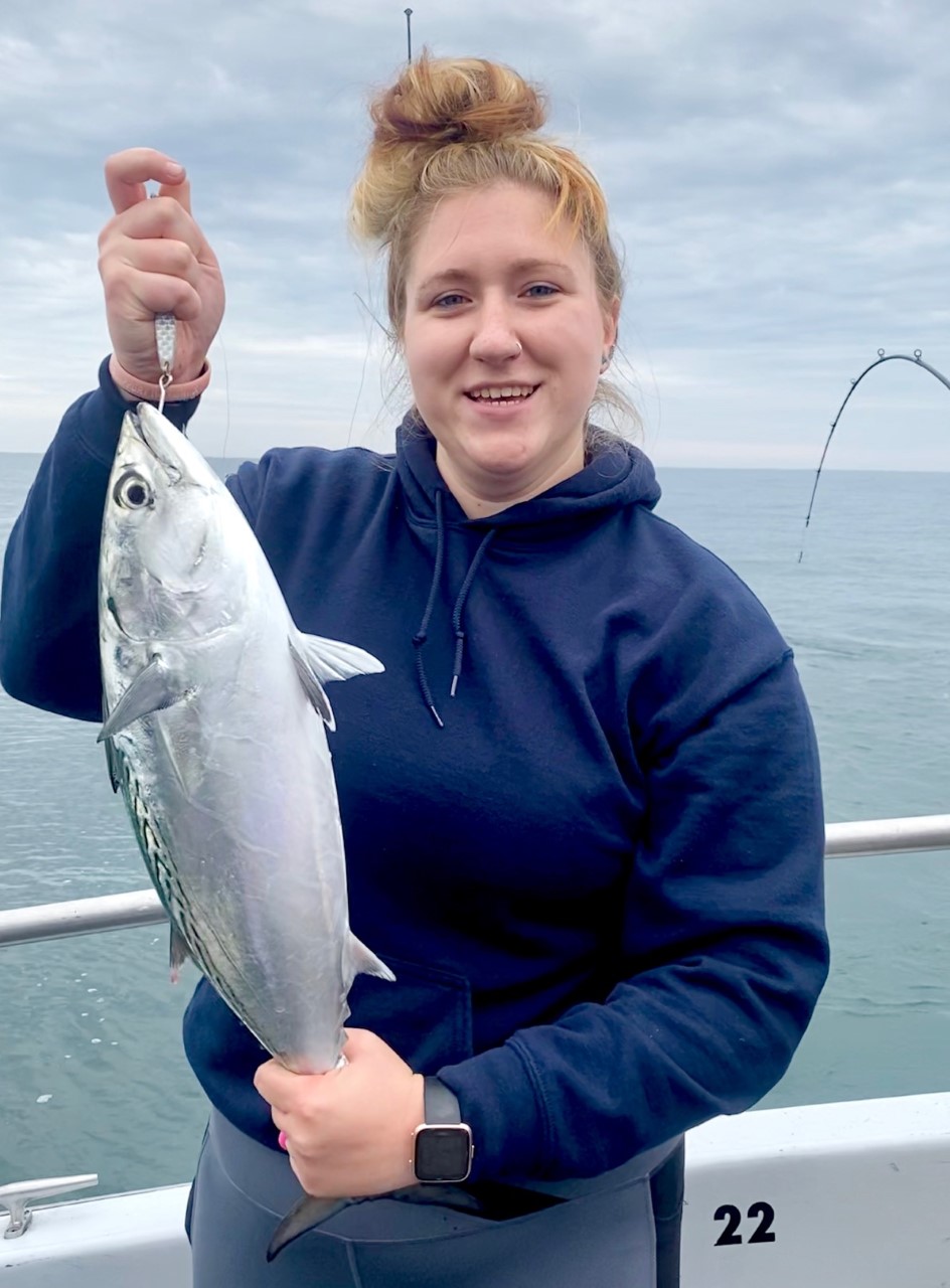 Captain Chase Eberle of Chasin’ Tides Charters was out there amongst the sea bass and false albacore today and had a good day for his anglers.