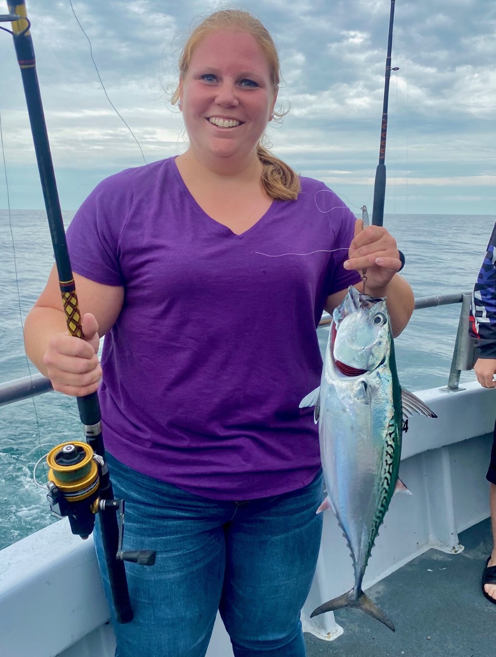 Heather Roth of Baltimore was our shark angler today. In the bad old days we’d have gaffed that rascal – released instead. Haven’t killed a shark in almost 30 years..