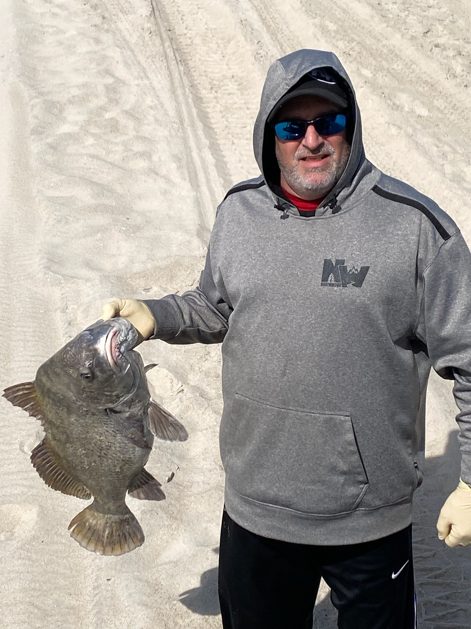 Mike Layton fished the Assateague surf where he landed this pretty black drum on a sand flea bait. His buddy Ron hooked up the photo and got him in the report.