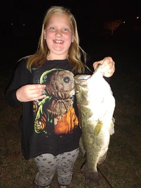 9-year-old Cherry Martin was top water bass fishing last night with her Dad Buddy when she caught this big 23″ bucket mouth on a Pop-R.