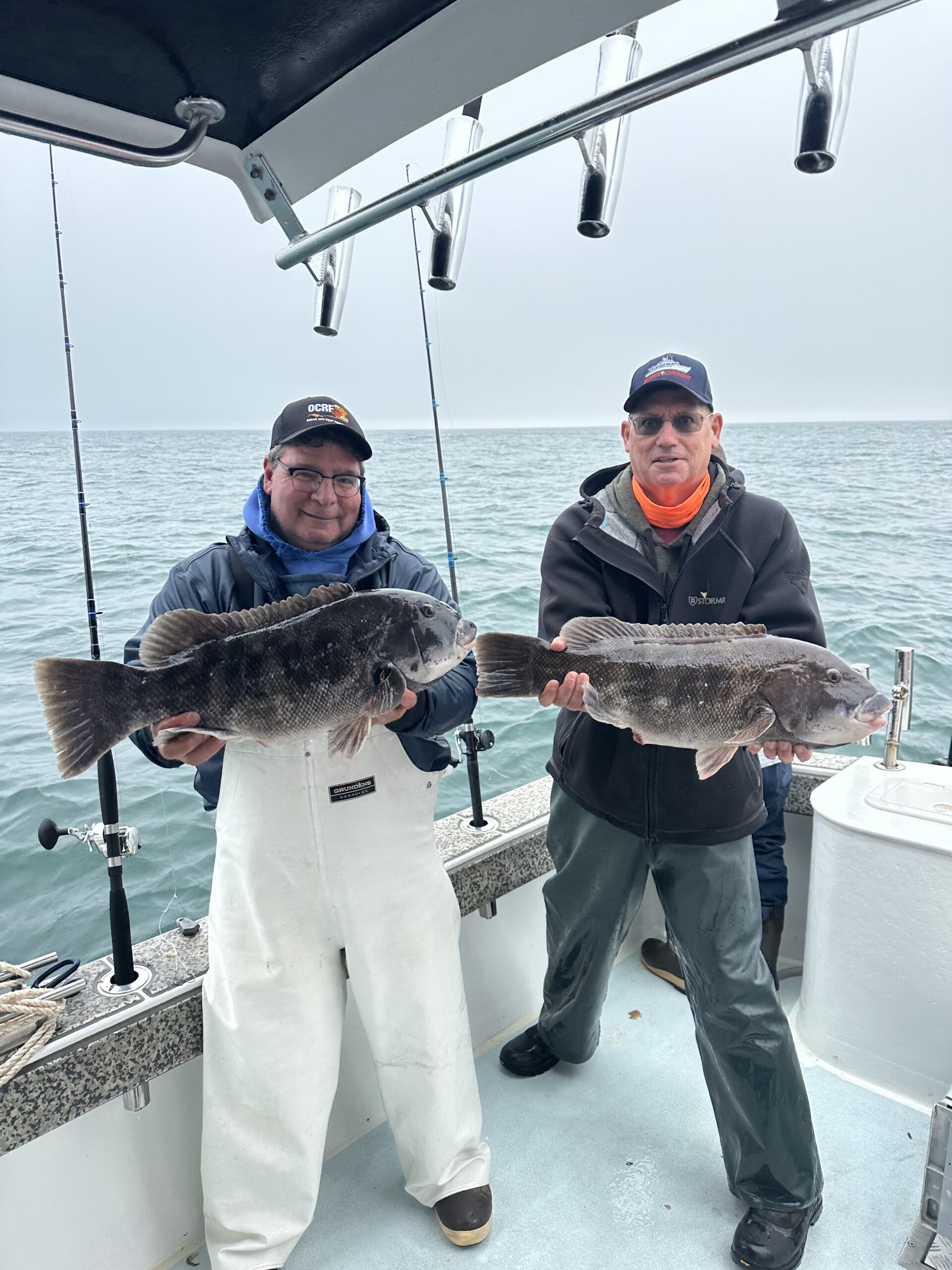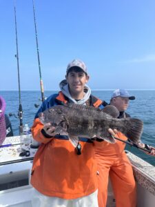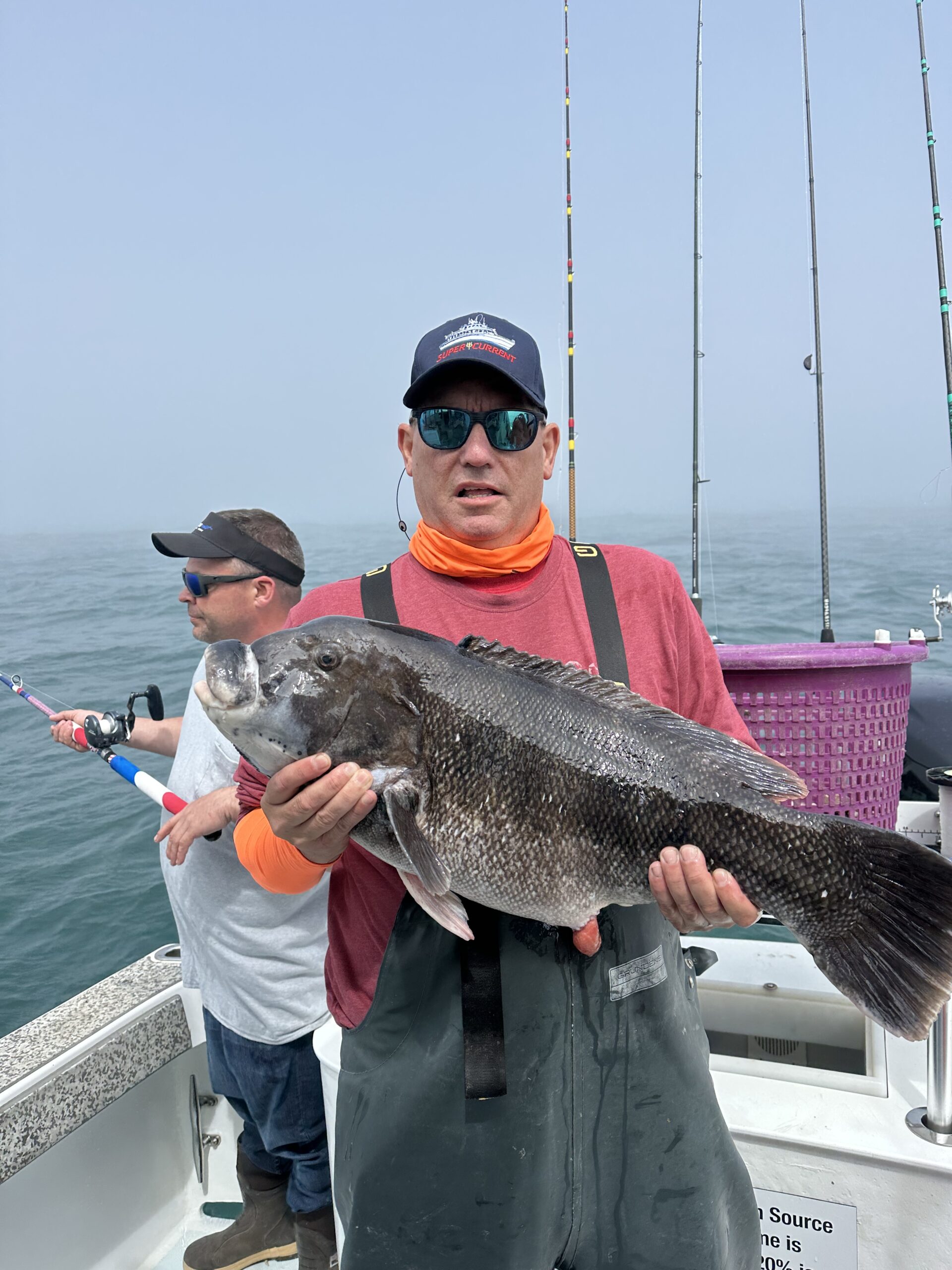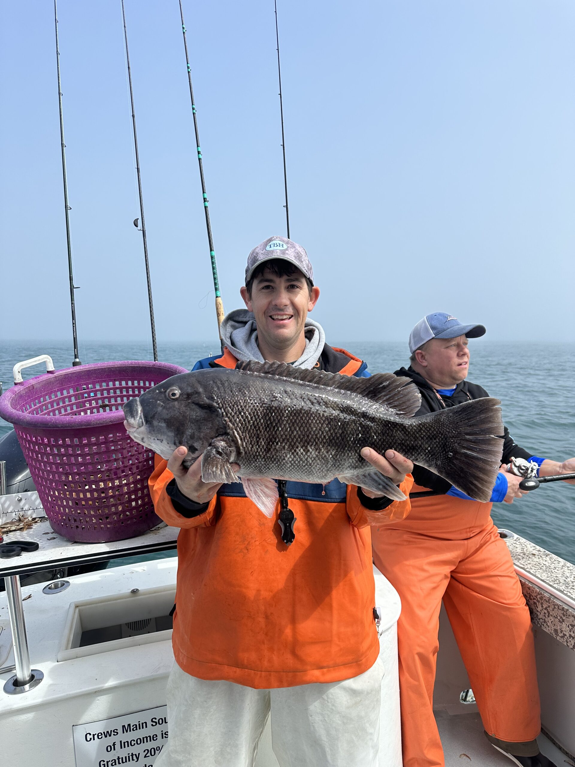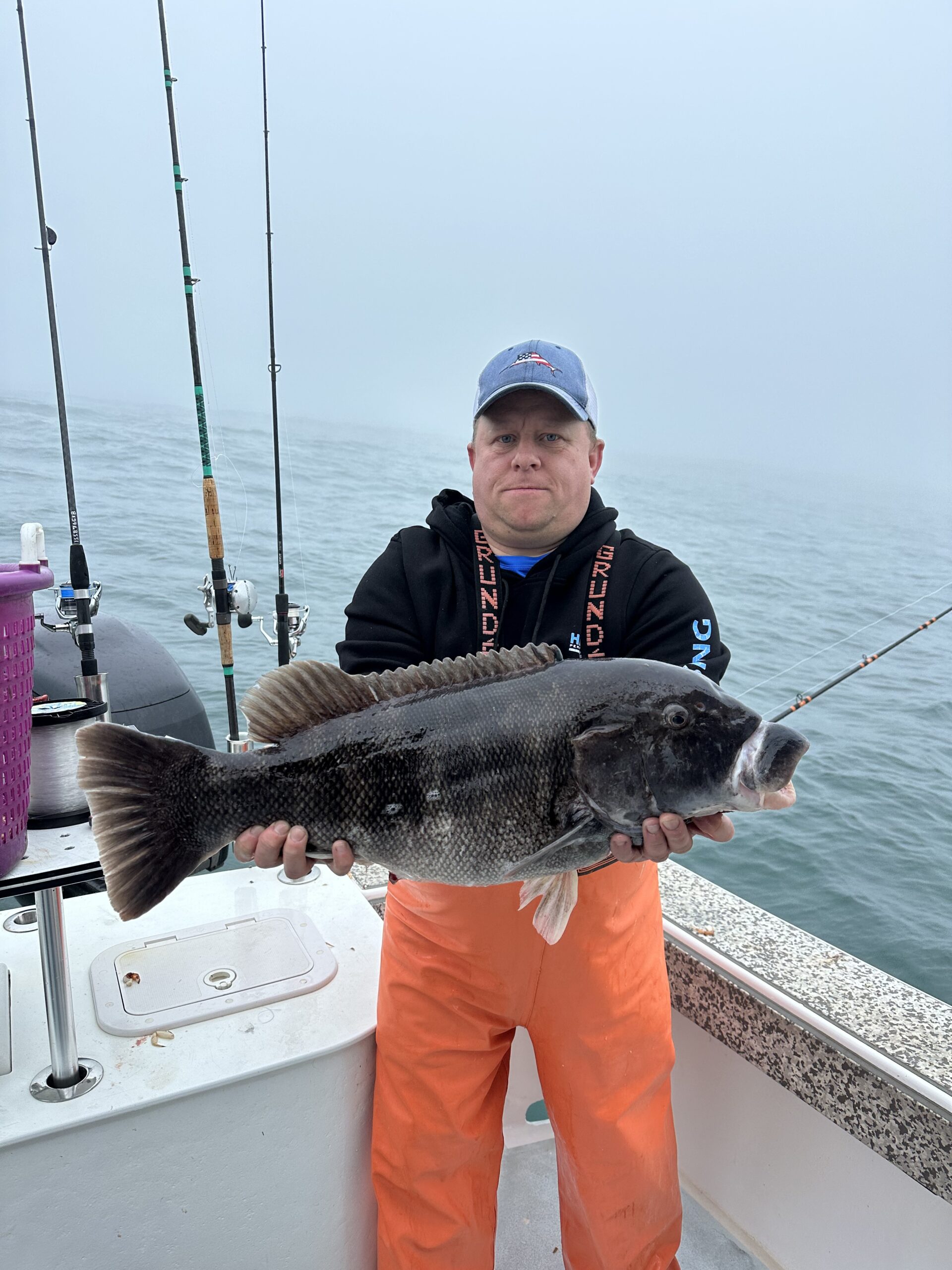 Captain Chase Eberle of Chasin’ Tides had his “best tog trip ever” today with 19….yes 19 double digit tautog coming over the rail. Captain Chase had some seasoned tautog anglers on board today, but I expect that even they haven’t seen anything like they witnessed on today’s trip. Anglers on board Chasin’ Tides caught this list of tautog today……three 10 pounders, two 11 pounders, four 12 pounders, three 13 pounders, three 14 pounders, one 15 pounder, one 19 pounder, a 20 pounder and a 21 pounder. Bill Decosta had the third largest fish at 19.5 pounds which he caught on the jig and tog fisherman extraordinaire, Joe Mole caught both the 20 pound fish and the largest 21 pound fish. All of the fish caught on today’s trip except the 21 pounder were released. Congratulations to Captain Chase, the crew and to Joe for 20 pounders on one trip!!