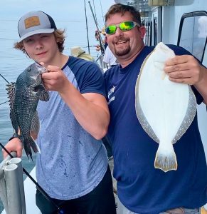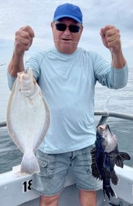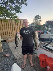 Sea Bass Bob was high hook. Flounder George boxed a limit of fluke. Holly, Mike & Cathy each had a nice mixed bag. Dean caught the pool fish just steps away while Dom had heaviest fluke ..and Murray?