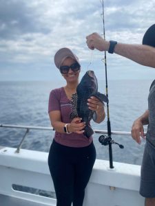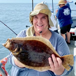 Ahhhh, Cathy’s birthday today. The regulars even had cake and cards. (A tasty dagone cake too!) She and her parents fished with me on some of those tog trips in the early 80s. She’s quite often high hook these days – many, many times I’ve seen her bring nearby male anglers nearly to tears. (Was especially bad when Sue Foster and Cathy were both aboard. Most guys didn’t have a prayer.)