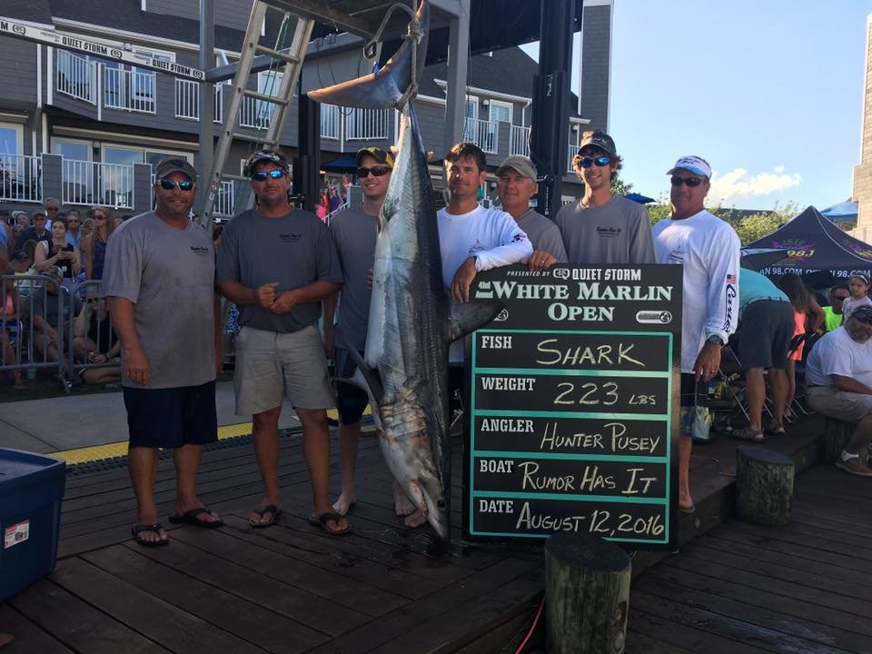 2nd Place     Rumor Has It     Hunter Pusey     223 Pound Mako Shark    $3,500