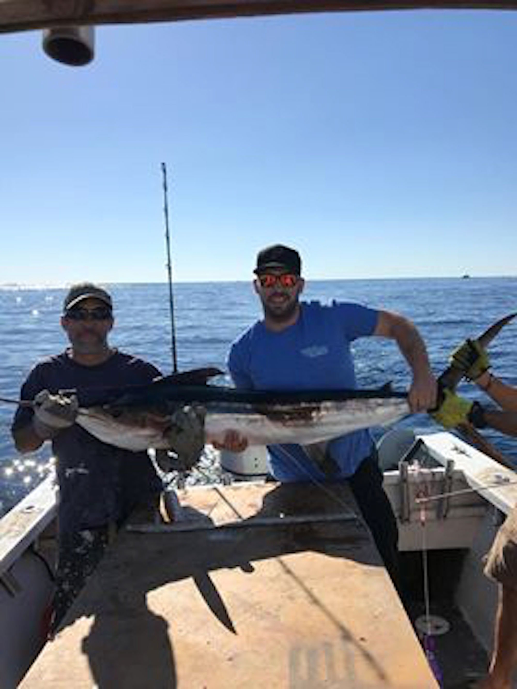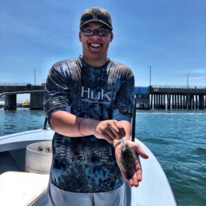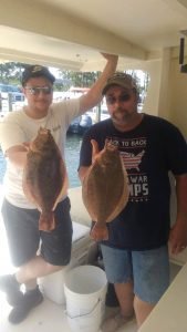 Bay Time Charters with Captain Brad McCabe was out for a short Father’s Day trip today and put a couple of keepers in the box. Pictured below are Greg Donahue and Brad’s son Finn McCabe.