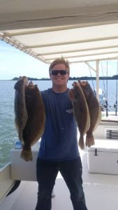 Flounder fishing in the back bay continues to be productive for anglers fishing in clean water on the high tide. Captain Jason Mumford of Lucky Break Charters had a great weekend of floundering and also found some croakers on the bottom of the tide.