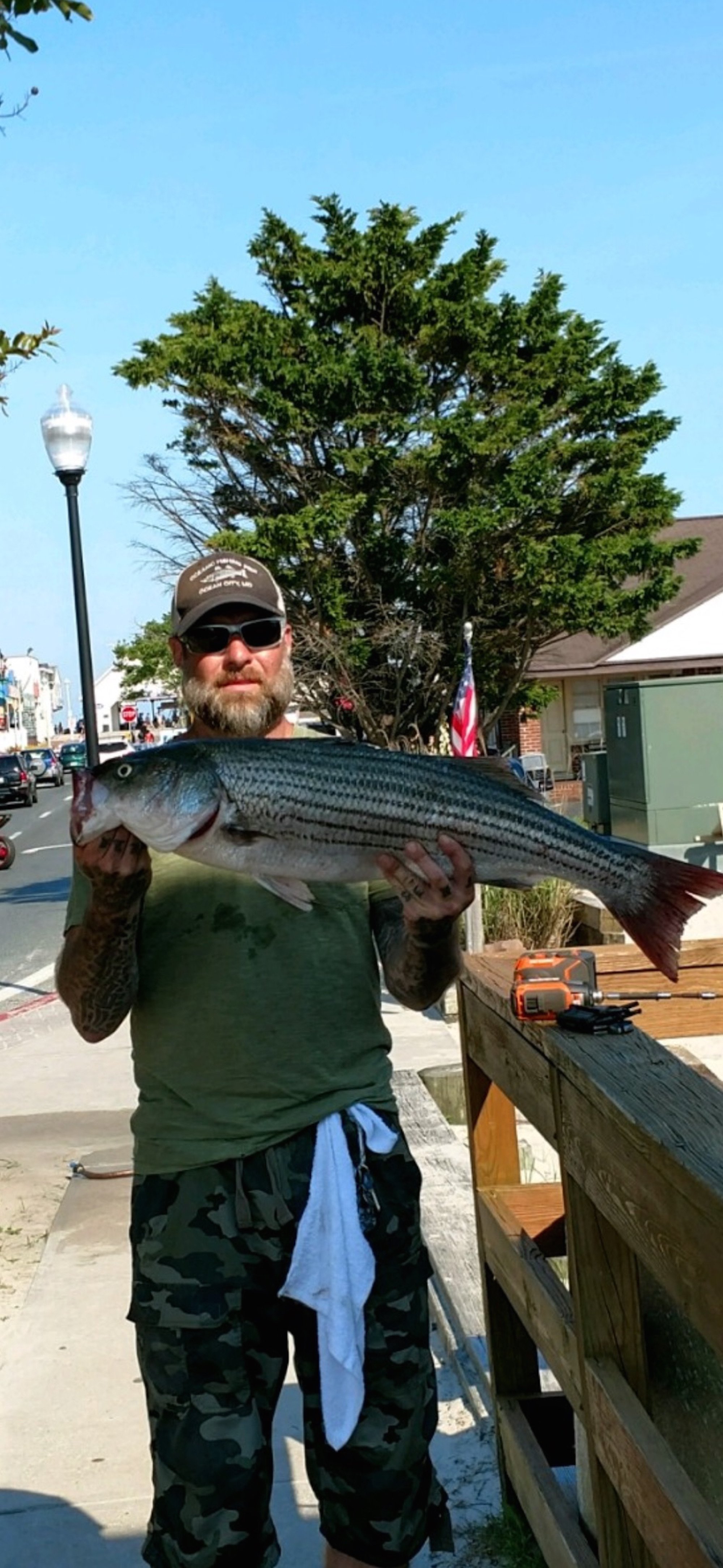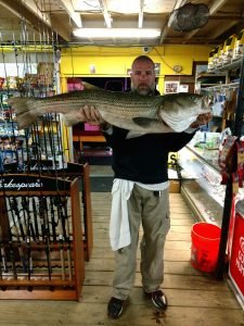 John from Baltimore has been tearing up the keeper rockfish in the inlet and at the route 5o bridge on Zoom baits lately. Bear sent me a couple of shots of John from recent trips where he caught fish to as big as 44″.