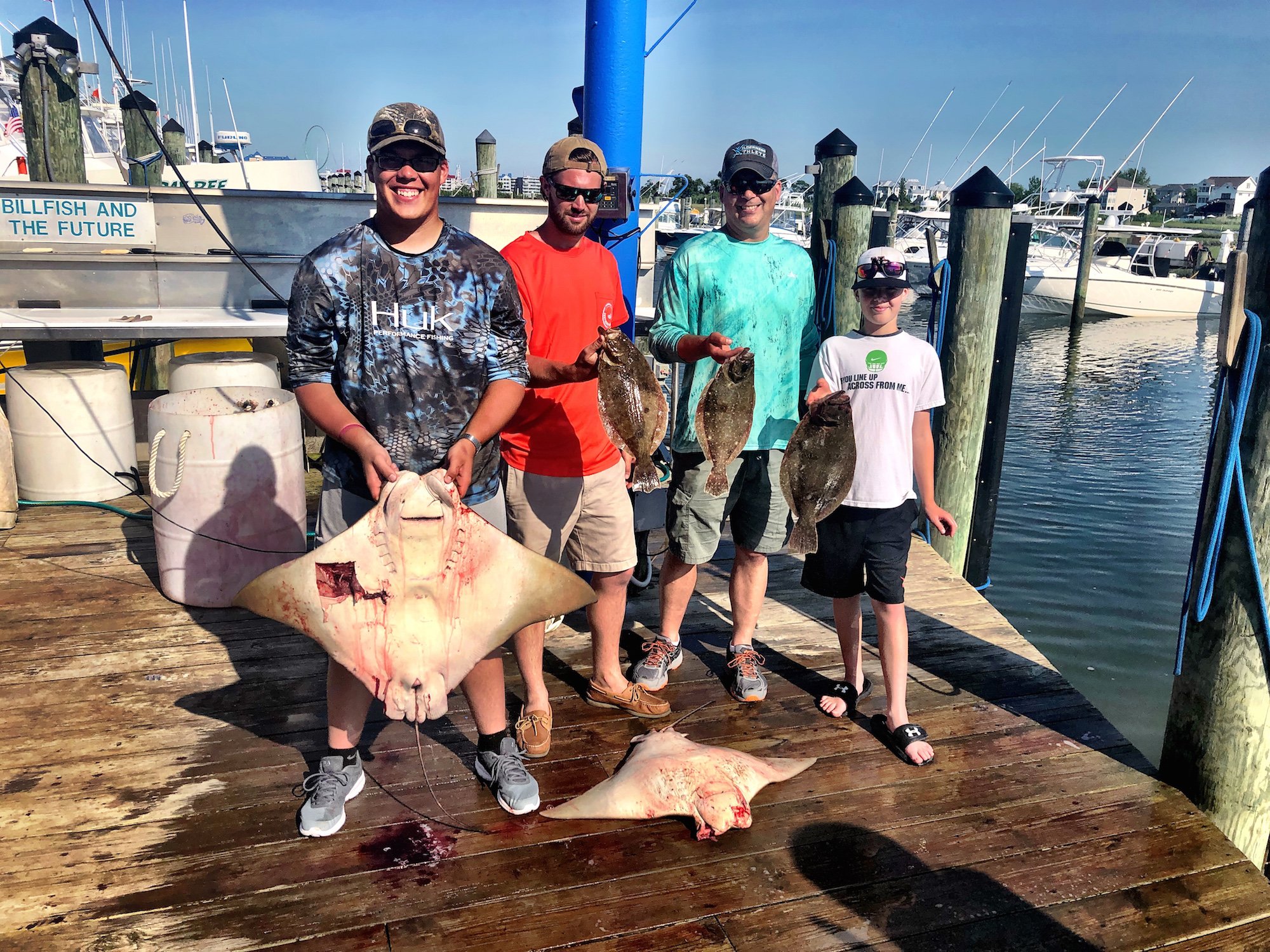 Captain John Prather of Ocean City Guide Service had some productive trips today in the inlet and east channel. Captain John had a combo trip where he put some bowfishermen on some cow nosed ray action and a couple of flounder and another trip where he put some more keeper flounder in the box.
