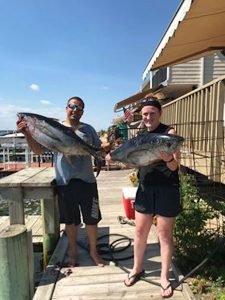 Tom Patania and Allison Sokolik had a good day in the Baltimore Canyon on Saturday and display a couple of their tuna here.