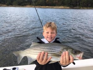 Grayson Wooldridge was fishing with his dad John when he landed his first throwback rockfish of the fall season while trolling the St Martin River with Rapala plugs.