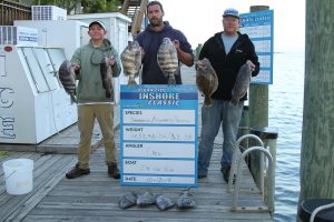 The 2019 Ocean City Inshore Classic is in the books and it was another awesome event! We had 32 boats and paid out $10,725 tonight with our big winner receiving over $4,000 of that. Big thanks to all of our sponsors, weigh master Jim Krall and all of the anglers that fished this year’s event. Mark your calendar’s for October 10 and 11, 2020 for next year’s OC Inshore Classic. See results and some awesome pics from Dave Messick of Hooked on OC below!!