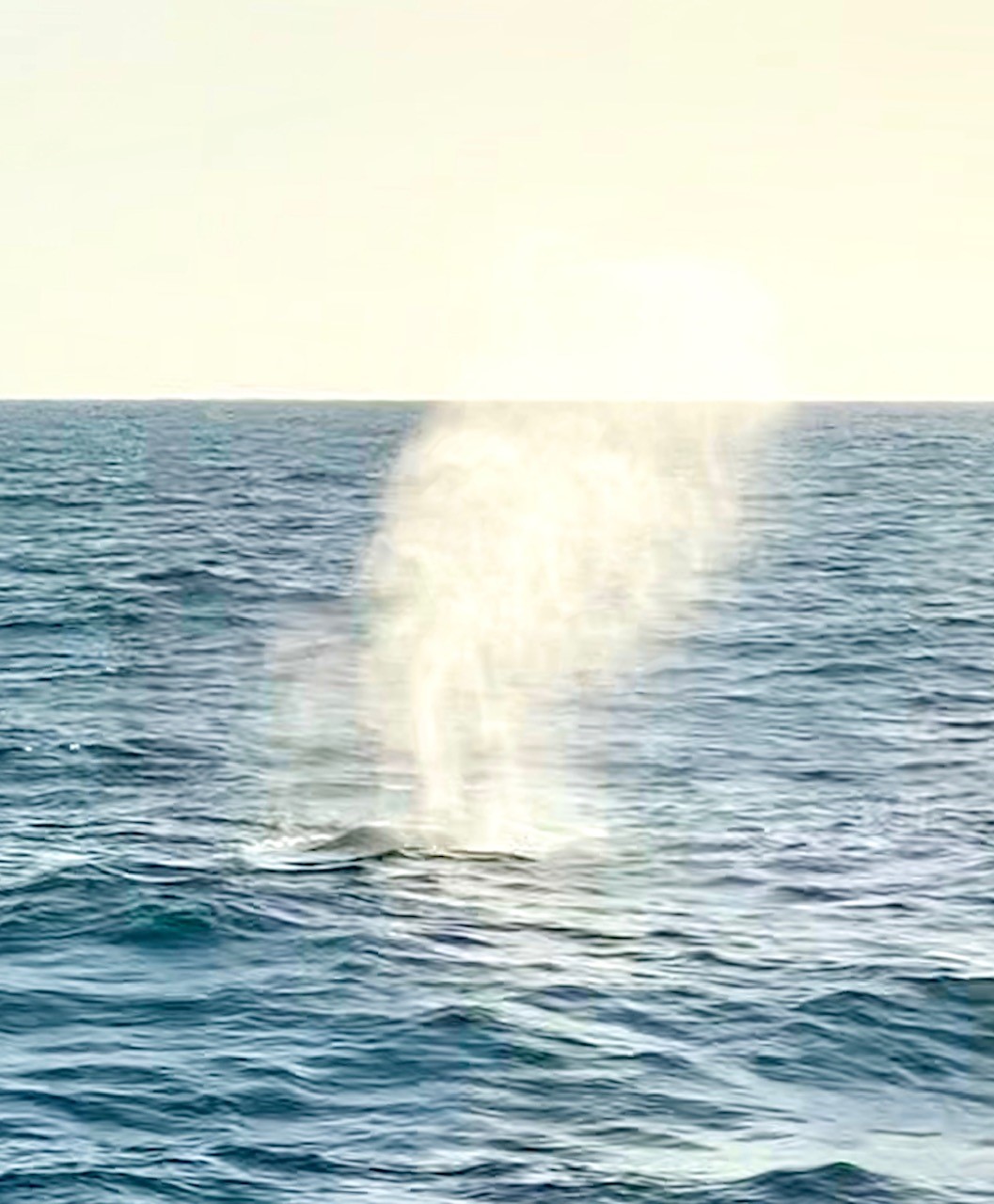 Great start to the day. No wind, 32 pieces of block our Amish clients eagerly helped load aboard; sunrise not epic, but not bad either – we dropped blocks at Al Berger’s Reef and kept going. Stumbled upon a lone young fin whale who’d corralled a school of menhaden for breakfast. Got some great snaps and pressed offshore some more.