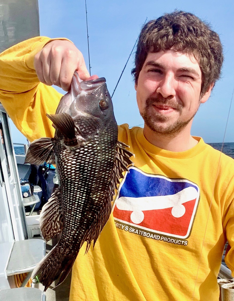 Doug Dottellis, soon from Atlanta GA, was the only client to bag out on sea bass today despite a ferocious bite (even double-headers on one hook!) & two hours of overtime..