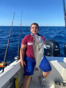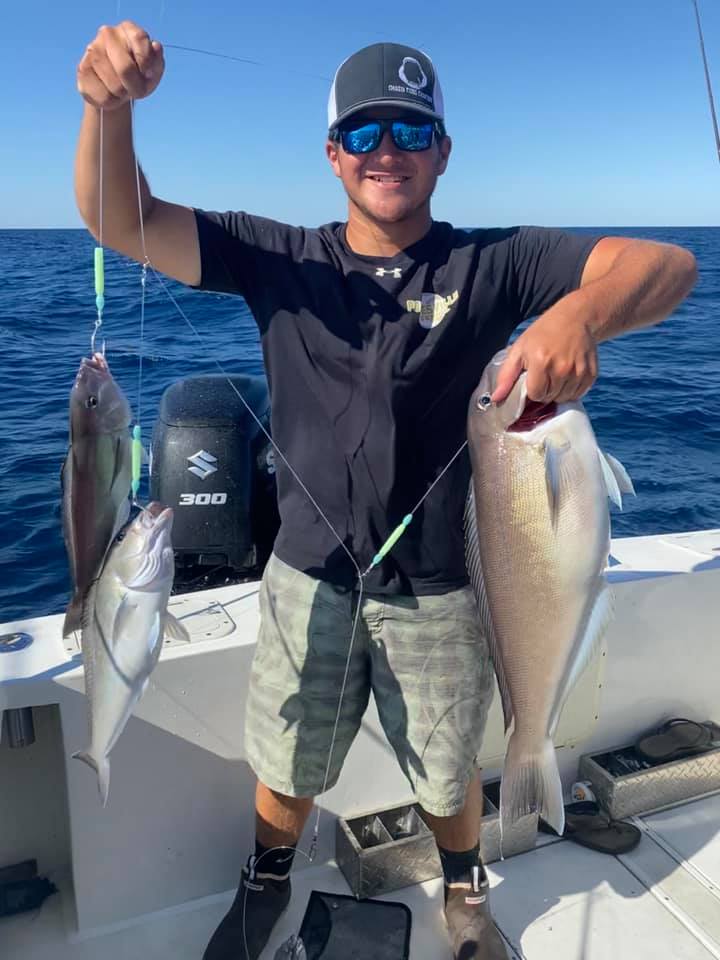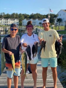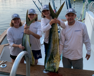 Braydon, Caroline and Carson had a great day in the ocean today fishing with Trevor Hardman when they landed their first mahi and sea bass.