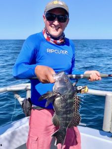 Sea bass just about took the day off. Caught some when we should have been catching doubles. Fished Harder! Ended up with fish fries for all aboard, even saw some anglers in double-digits. Wil Haussmann from Berlin had the biggest cbass at about 2.75lbs.