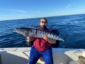 Captain Chase Eberle of Chasin’ Tides Charters had a nice day in the canyons today. He trolled up a nice wahoo for his anglers and then deep dropped for some tasty tilefish.