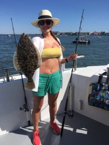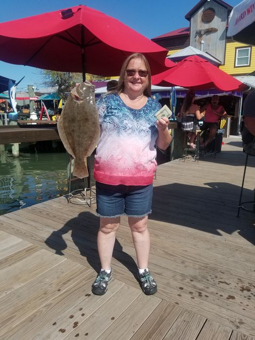 Captain Drew Zerbe of the Tortuga put this lucky lady angler on the winning flounder for the fish pool this afternoon.