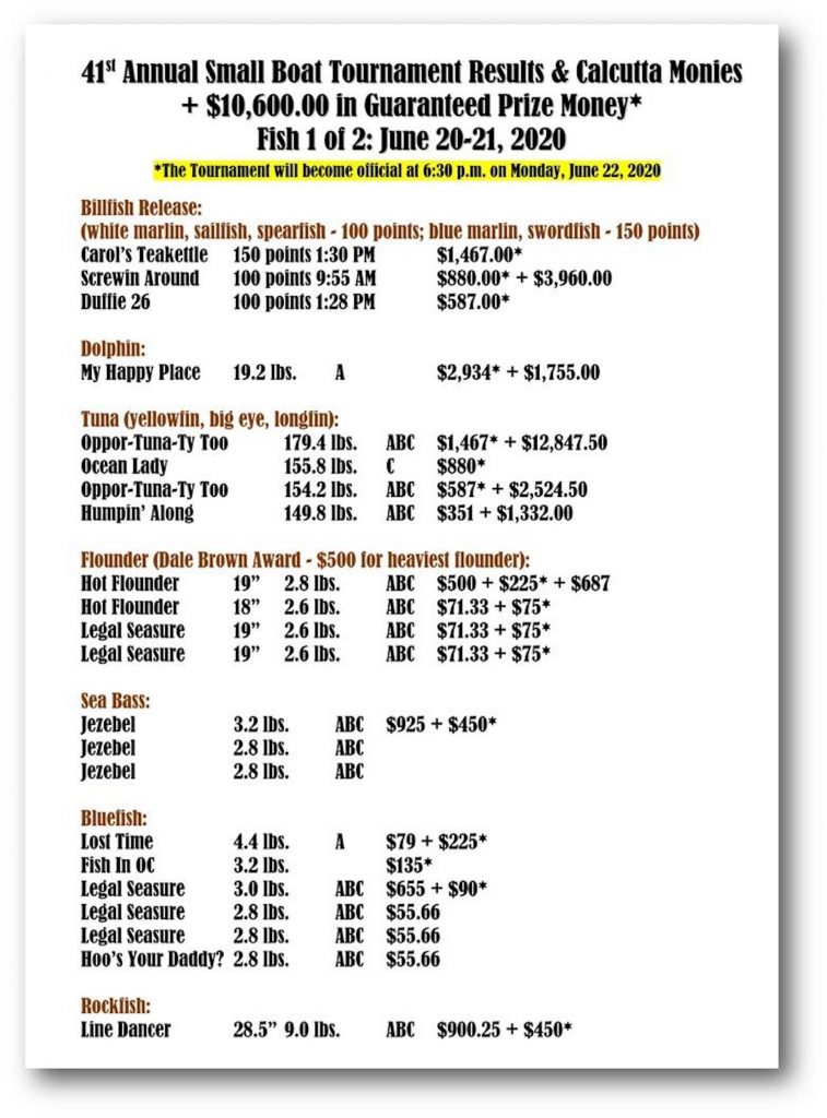 Happy Father’s Day to all of you Dads out there! I hope you all had a great day and enjoyed the beautiful weather with your family like I did. Lots of Dads were out on the water today taking advantage of the beautiful conditions and great fishing and we also got results from the 41st Annual Small Boat Tournament put on by the Ocean City Marlin Club.
