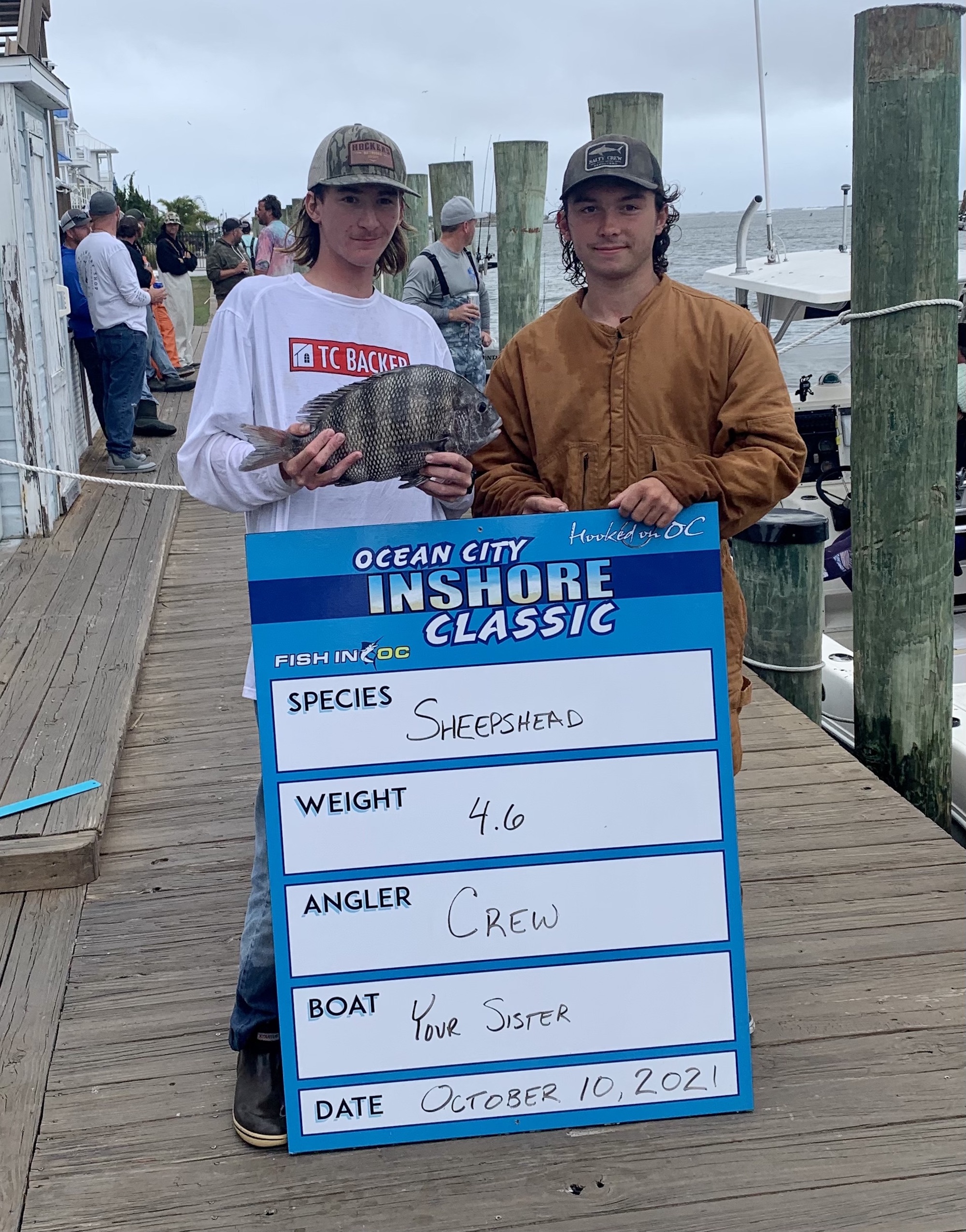 1st Place Tog / 1st Place Open $25, $50, $100, $200 Calcuttas Reel Quick. 3.2 Pound Tog / 10.6 Pound Sheepshead. $2,598.75