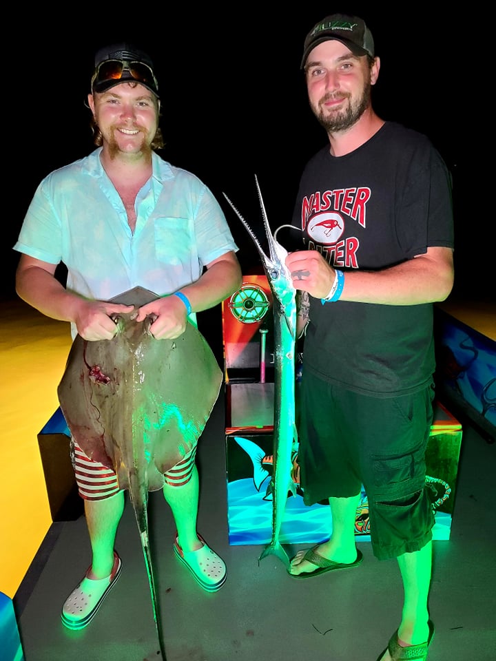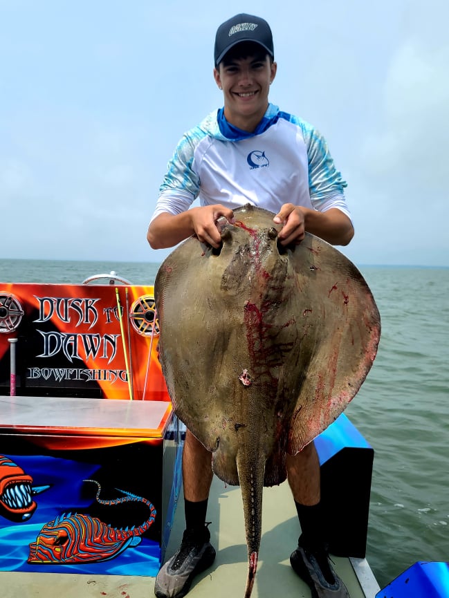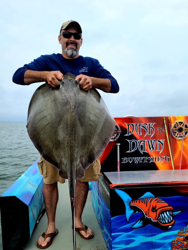 Captain Marc Spagnola of Dusk to Dawn Bowfishing has been working day and night again lately and his shooters are more than happy with the gar, snakeheads and rays that he’s putting them on.