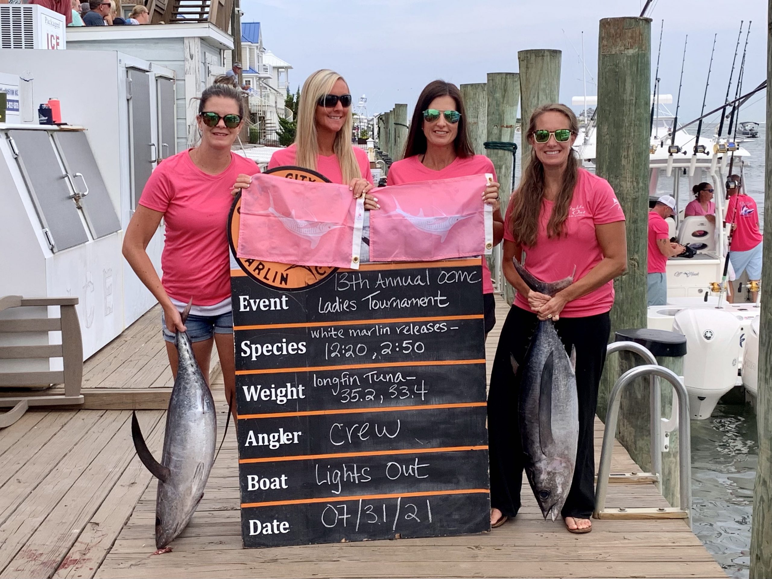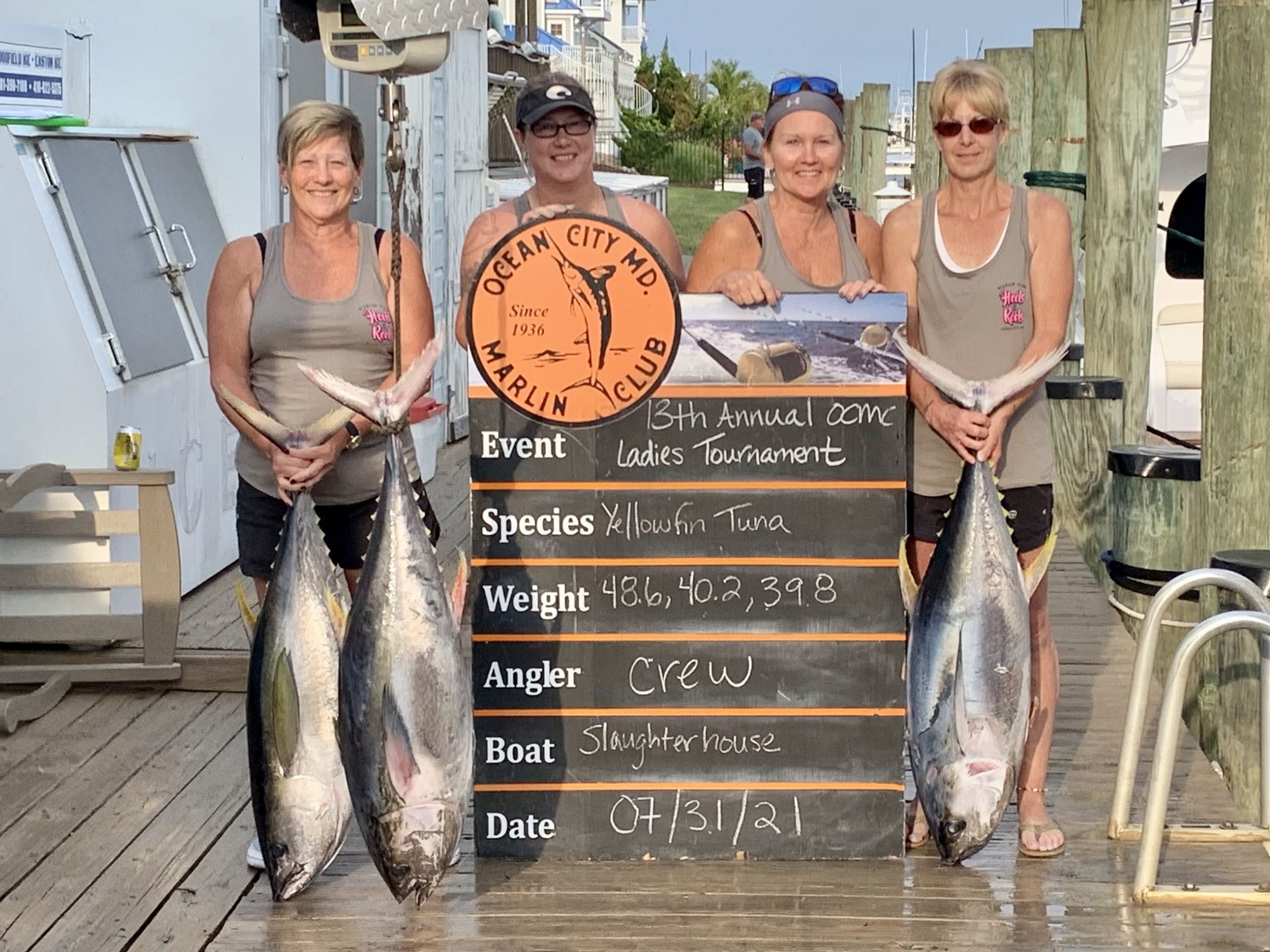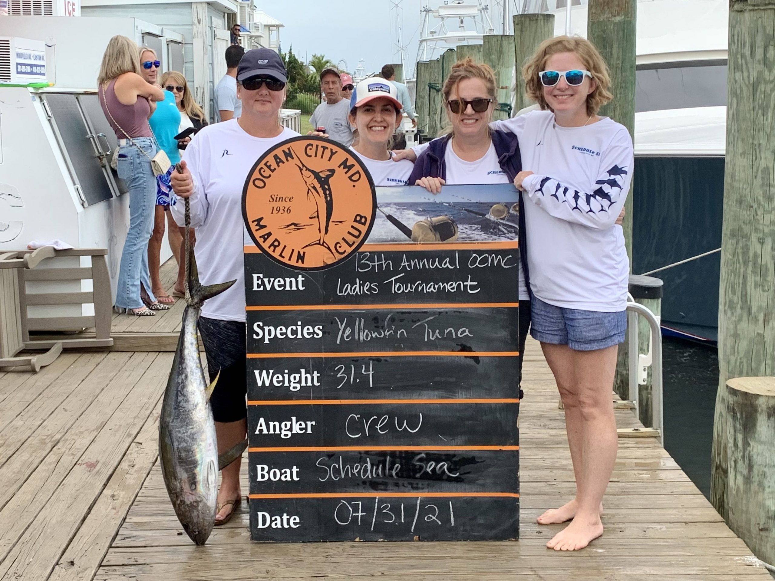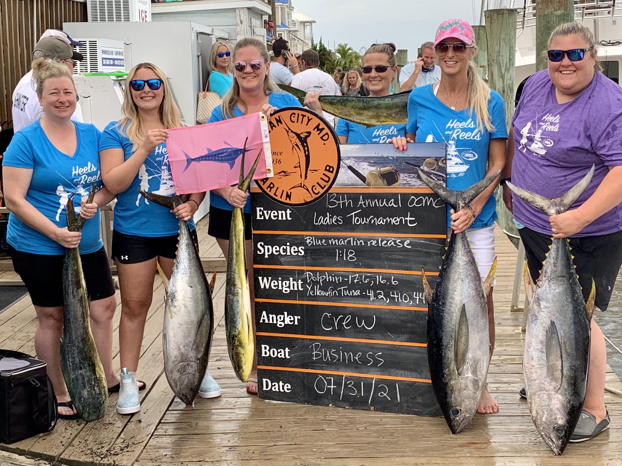 Today was the second and final day of the Ocean City Marlin Club’s Heels & Reels Ladies Tournament and it was a busy day at the scales. The ladies did a terrific job landing billfish, some big tuna and mahi and there was some big money won. Congratulations to all of the crews and thanks to Amanda Shick for the pics!