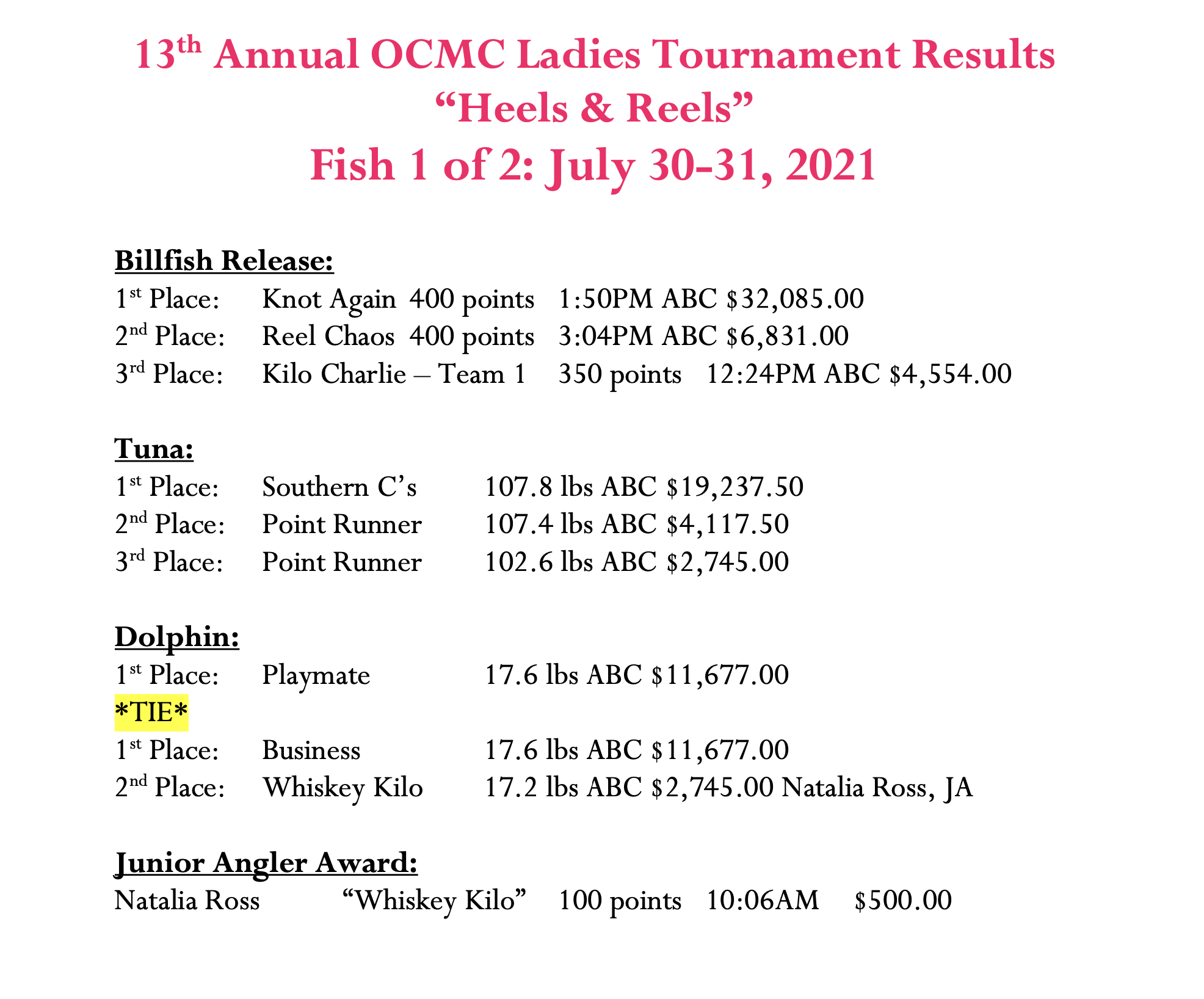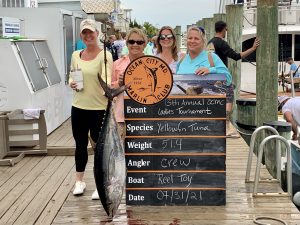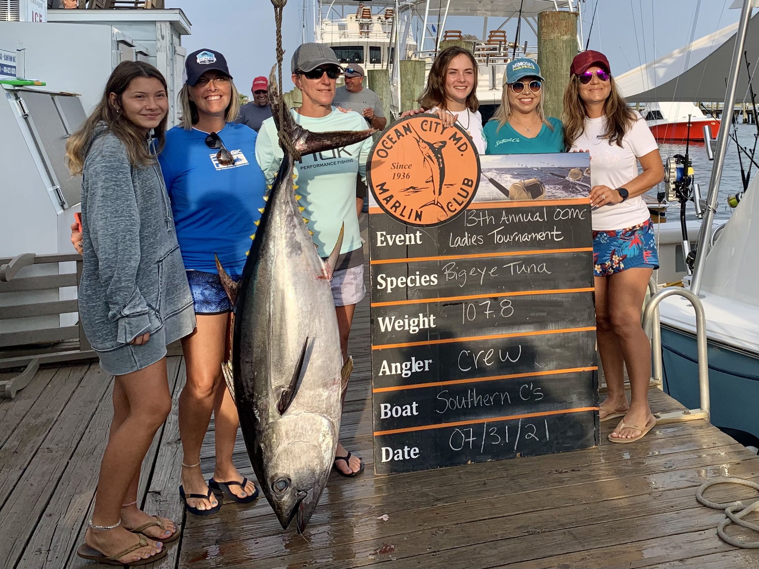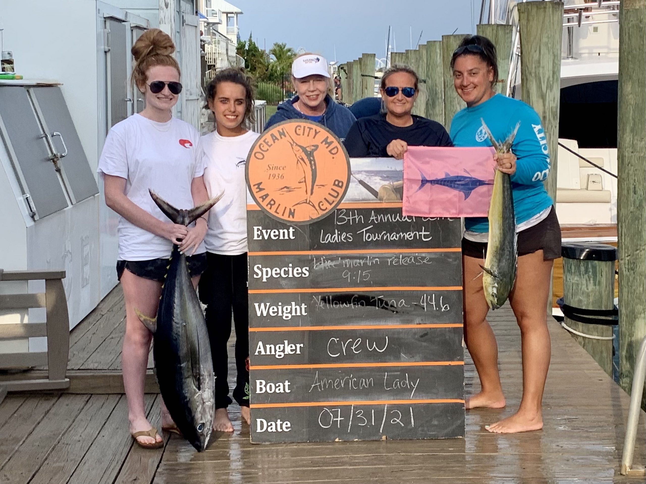 Today was the second and final day of the Ocean City Marlin Club’s Heels & Reels Ladies Tournament and it was a busy day at the scales. The ladies did a terrific job landing billfish, some big tuna and mahi and there was some big money won. Congratulations to all of the crews and thanks to Amanda Shick for the pics!
