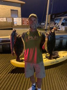 Shawn Flaherty kayaked over to Assateague Island this evening to chuck Roy Rigs and had a great catch of some flounder and a bonus trout.