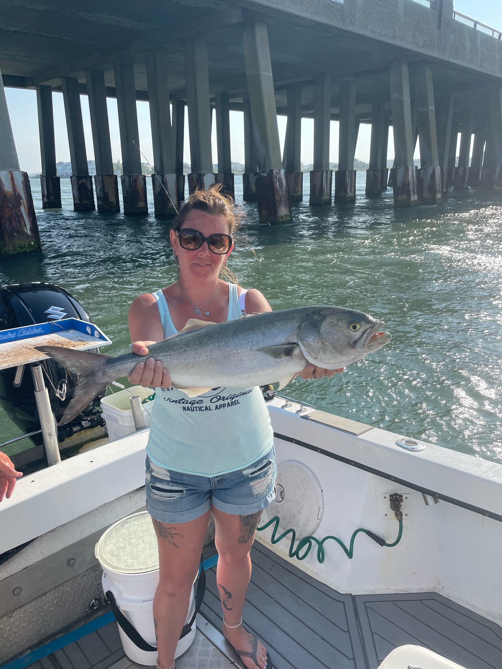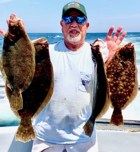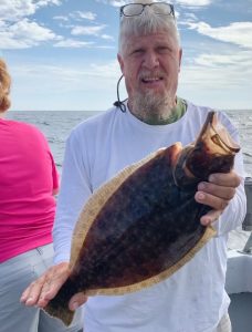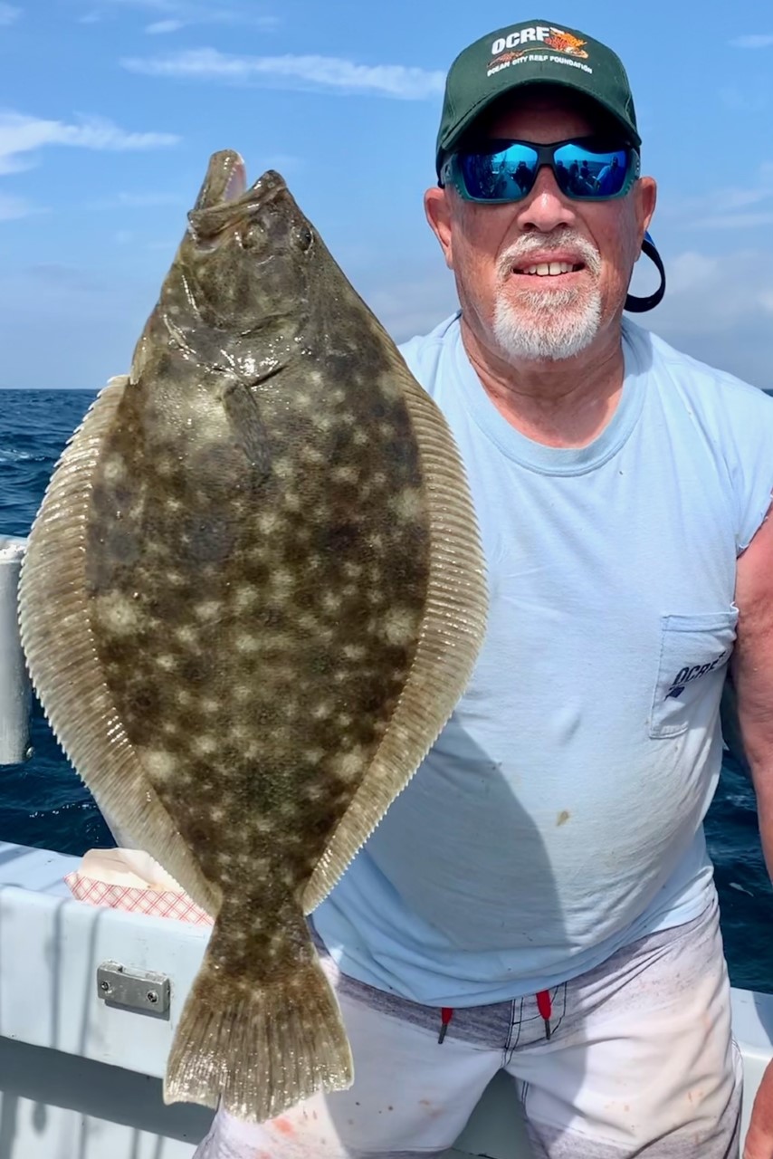 Captain Chase Eberle and the crews of Chasin’ Tides Charters had some great luck today with very good flounder fishing in the ocean and some croaker, big bluefish and a keeper rockfish from the bay.