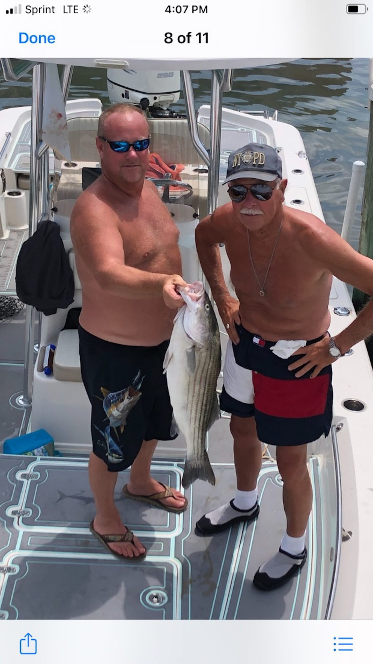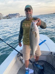 Rich Daiker put his dad on this nice 34″ keeper rockfish at the route 50 bridge today on a live spot.