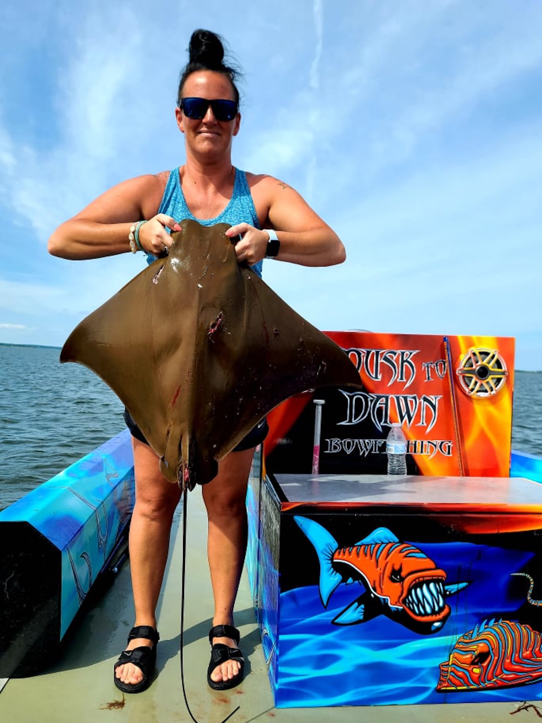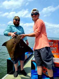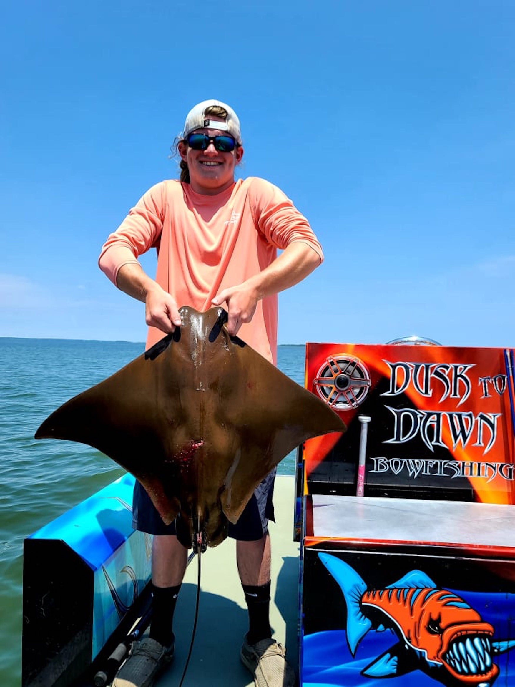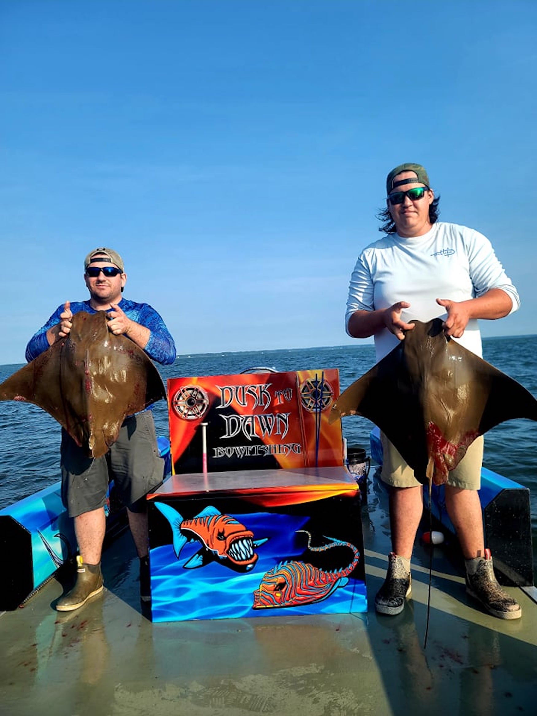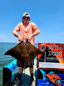 Captain Marc Spagnola of Dusk to Dawn Bowfishing found the clean water today and his shooters found their mark with cow nosed and southern rays.
