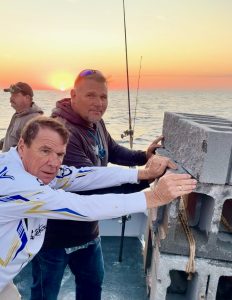 Eeamon, everyone’s favorite Irishman, and his friend, Larry, dropped twenty reef blocks as the sun came up. I hope all the sea whip that grows there are just as orange; turn the reef into a blaze of colorful soft corals where families can catch fish for many generations to come.