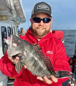 Away from the tournament there was some good bottom fishing in the ocean again today for the ocean bottom fishing fleet. Captain Chris Mizurak of the Angler had a good bite right from the get-go and put some very nice sea bass in the box along with a few flounder and triggerfish.