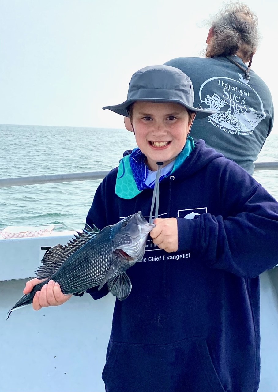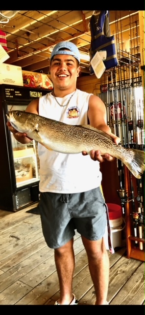 Cayden from Leesburg, VA caught this huge 23″ weakfish on a spec rig while fishing from the Oceanic Pier.