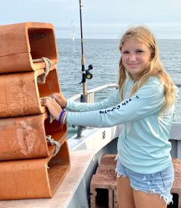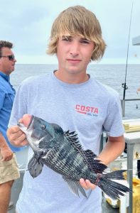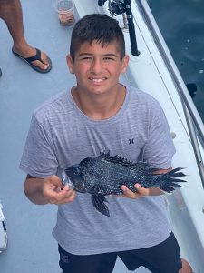 The good sized sea bass were snapping for the party boat fleet today and most everyone got to enjoy it. Captain Chris Mizurak of the Angler reported a “nice day” today with some big knotheads on board.