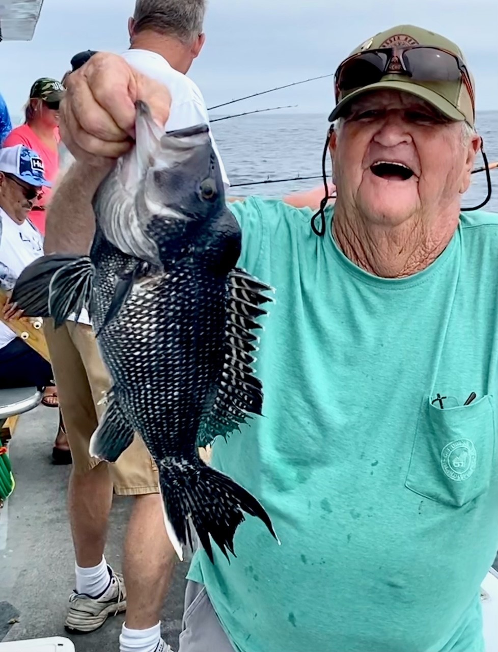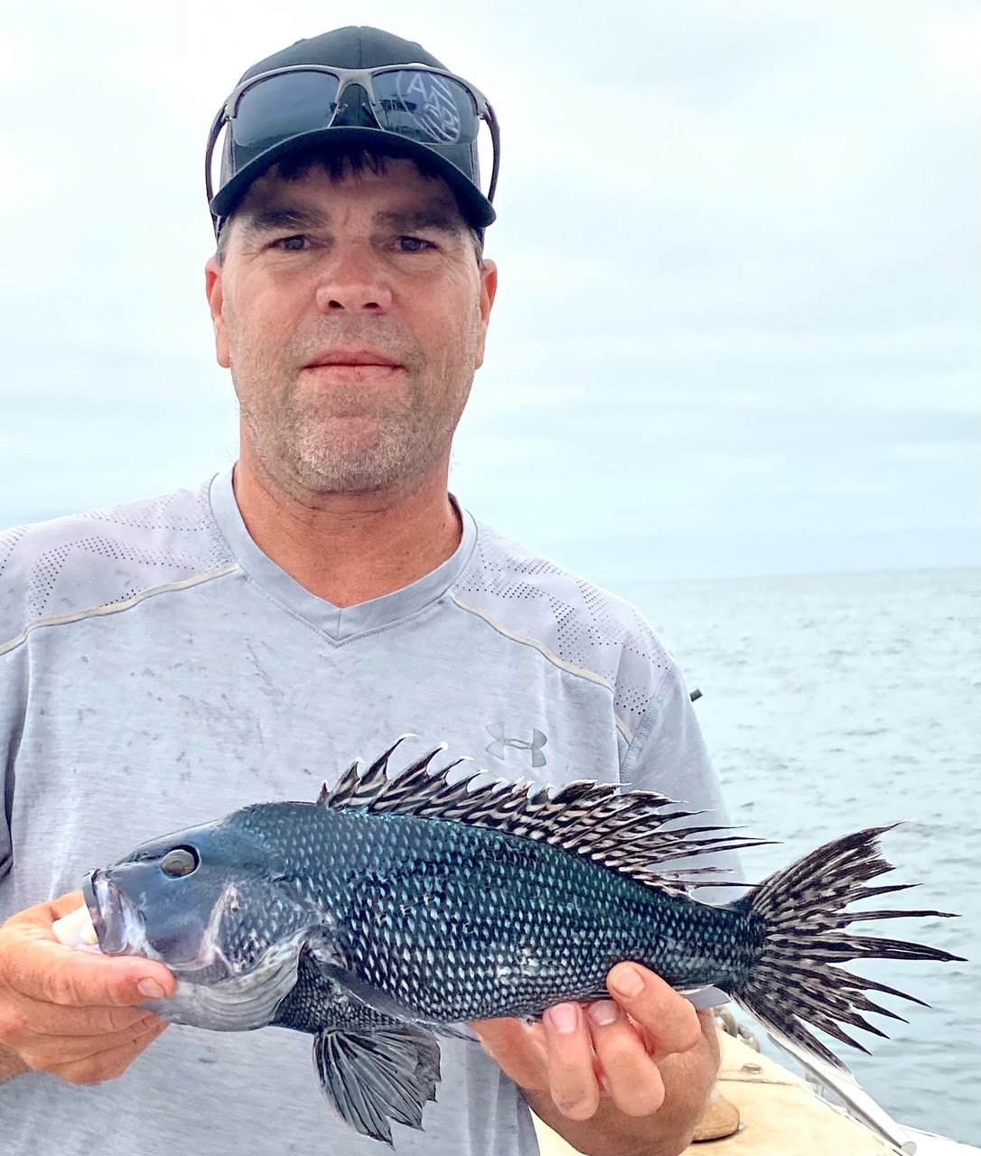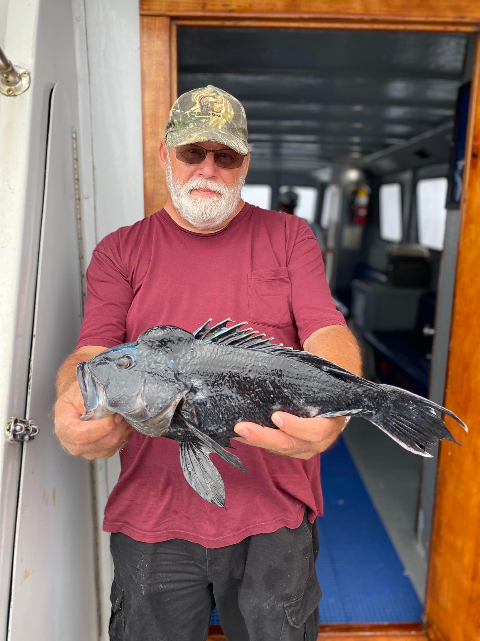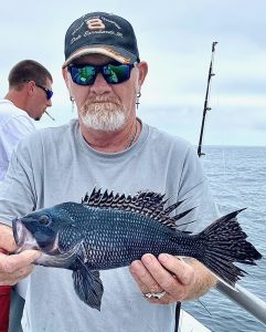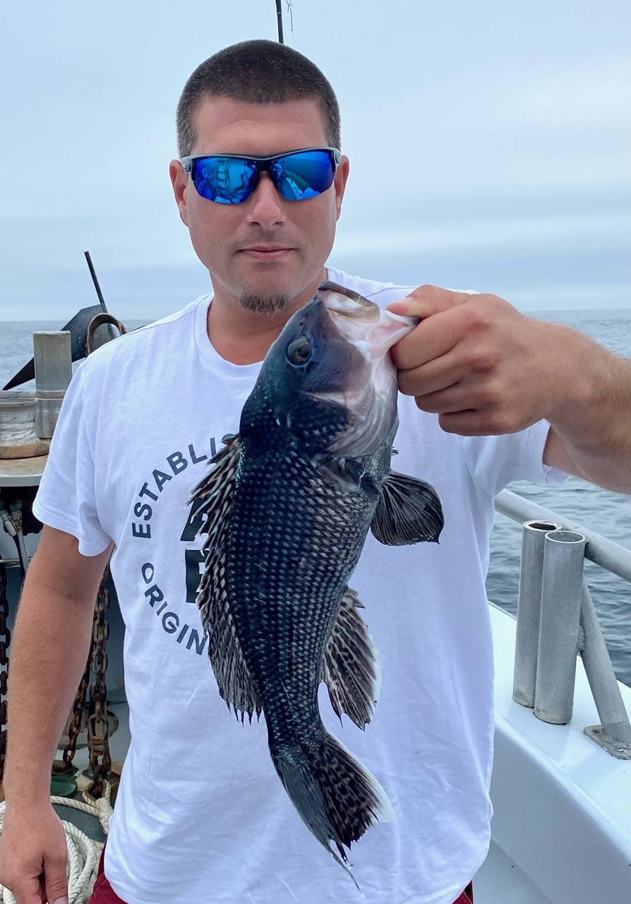 Captain Monty Hawkins of the Morning Star was private chartered today….and catching some jumbo sea bass.