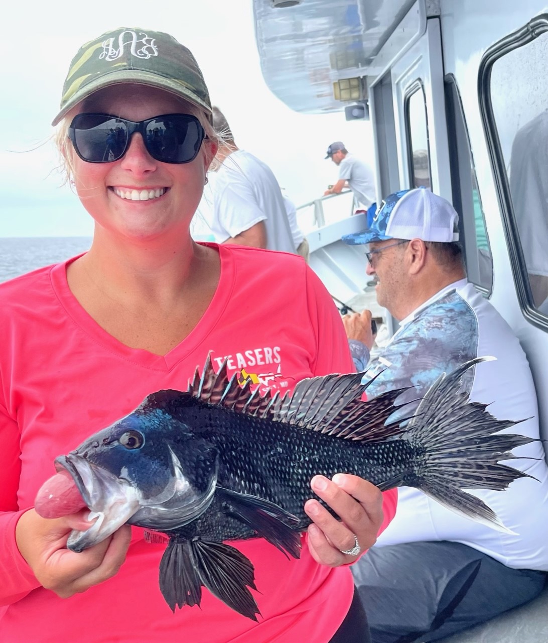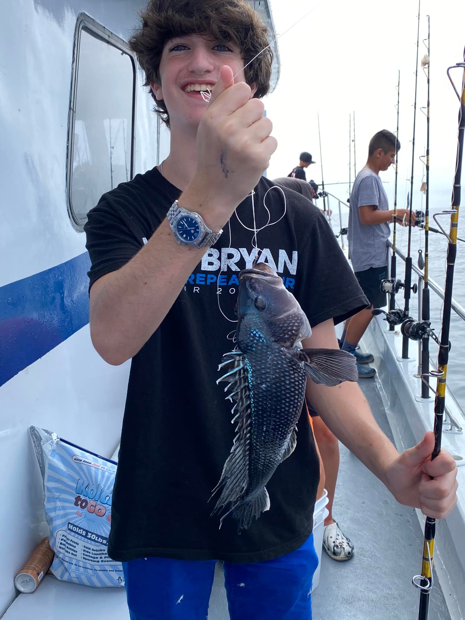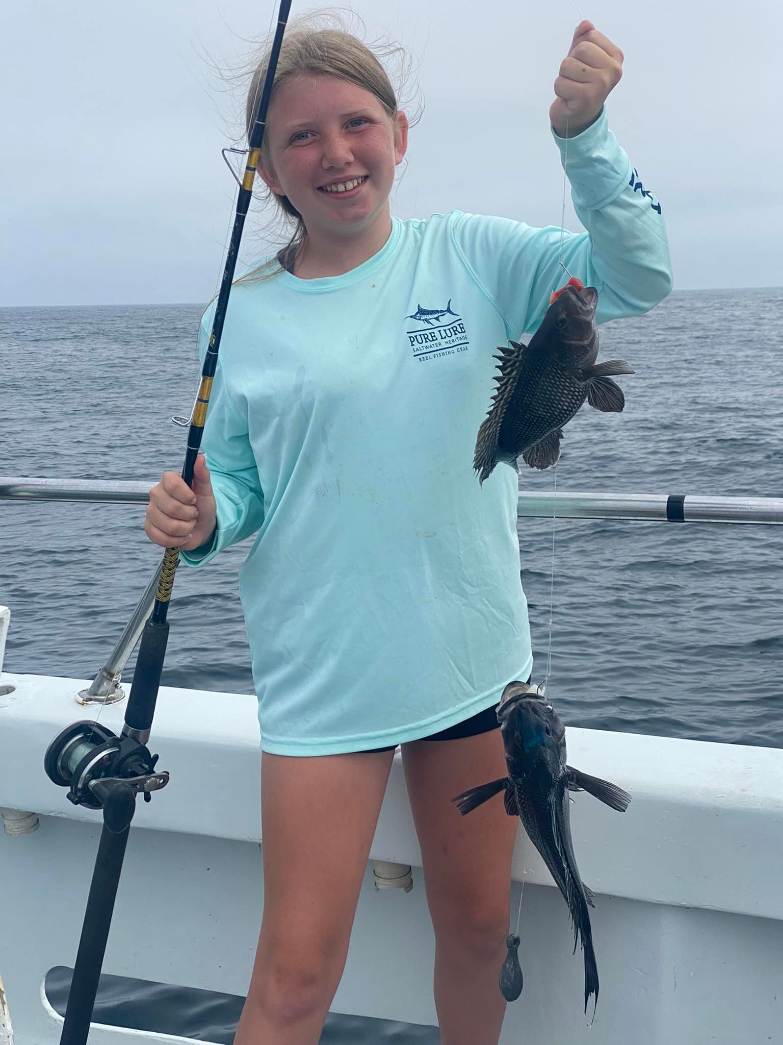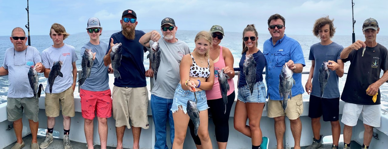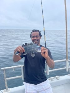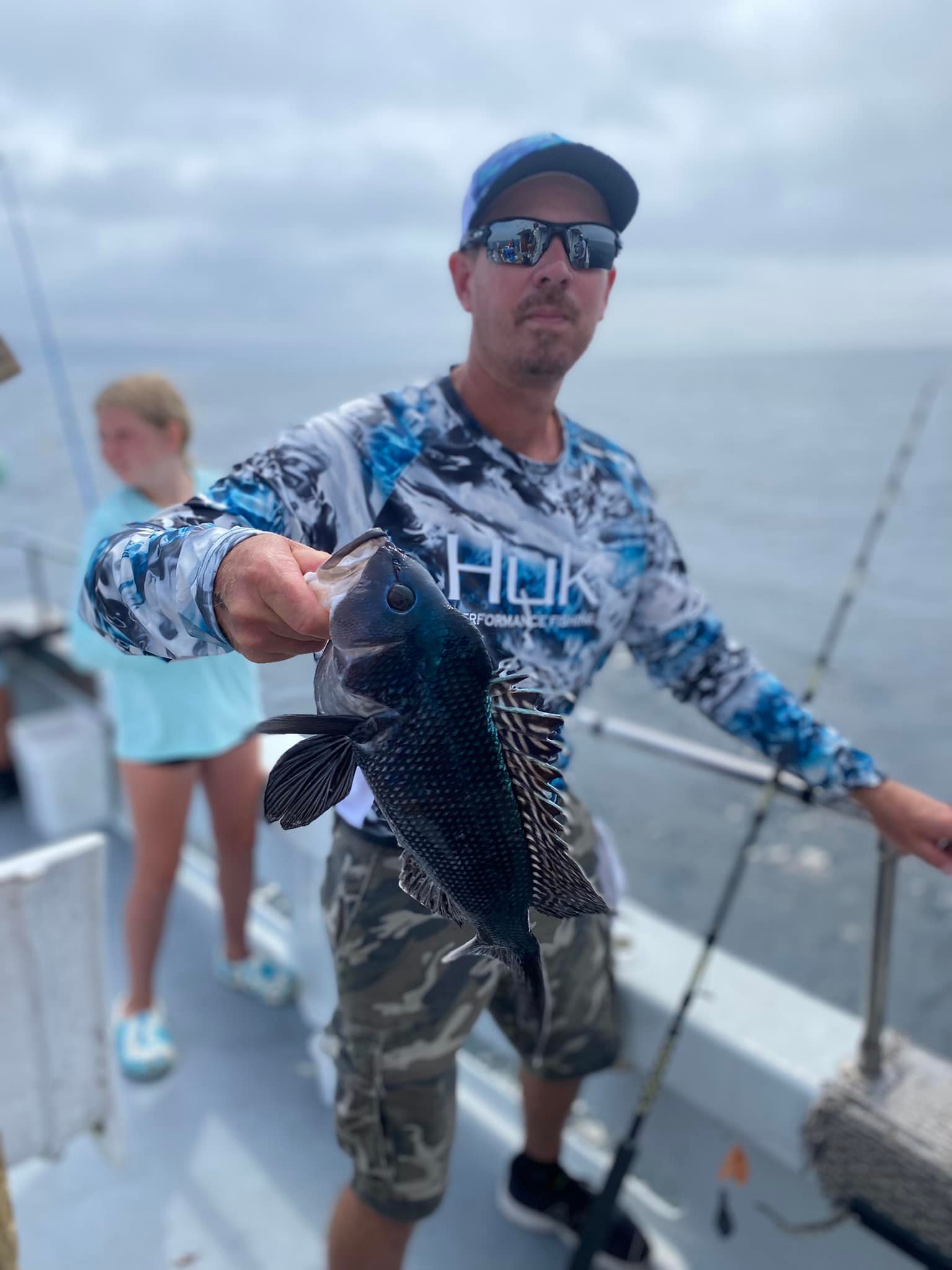 Captain Monty Hawkins of the Morning Star was private chartered today….and catching some jumbo sea bass.