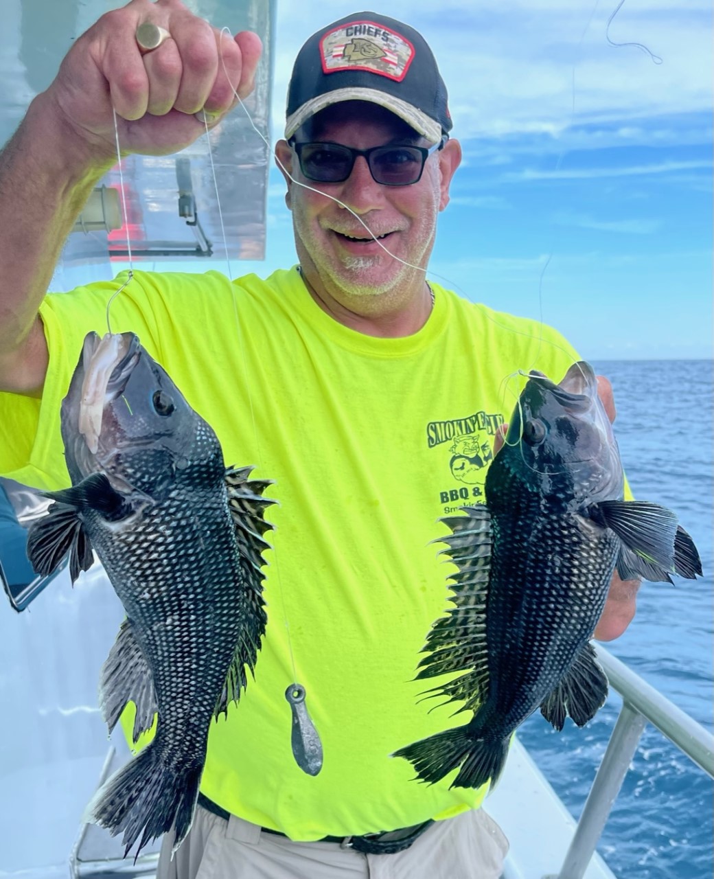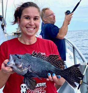 It was a summertime sea bass bite on board the Angler with Captain Chris Mizurak and crew today, but they still got it done with some sea bass and a couple of flounder.