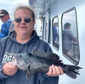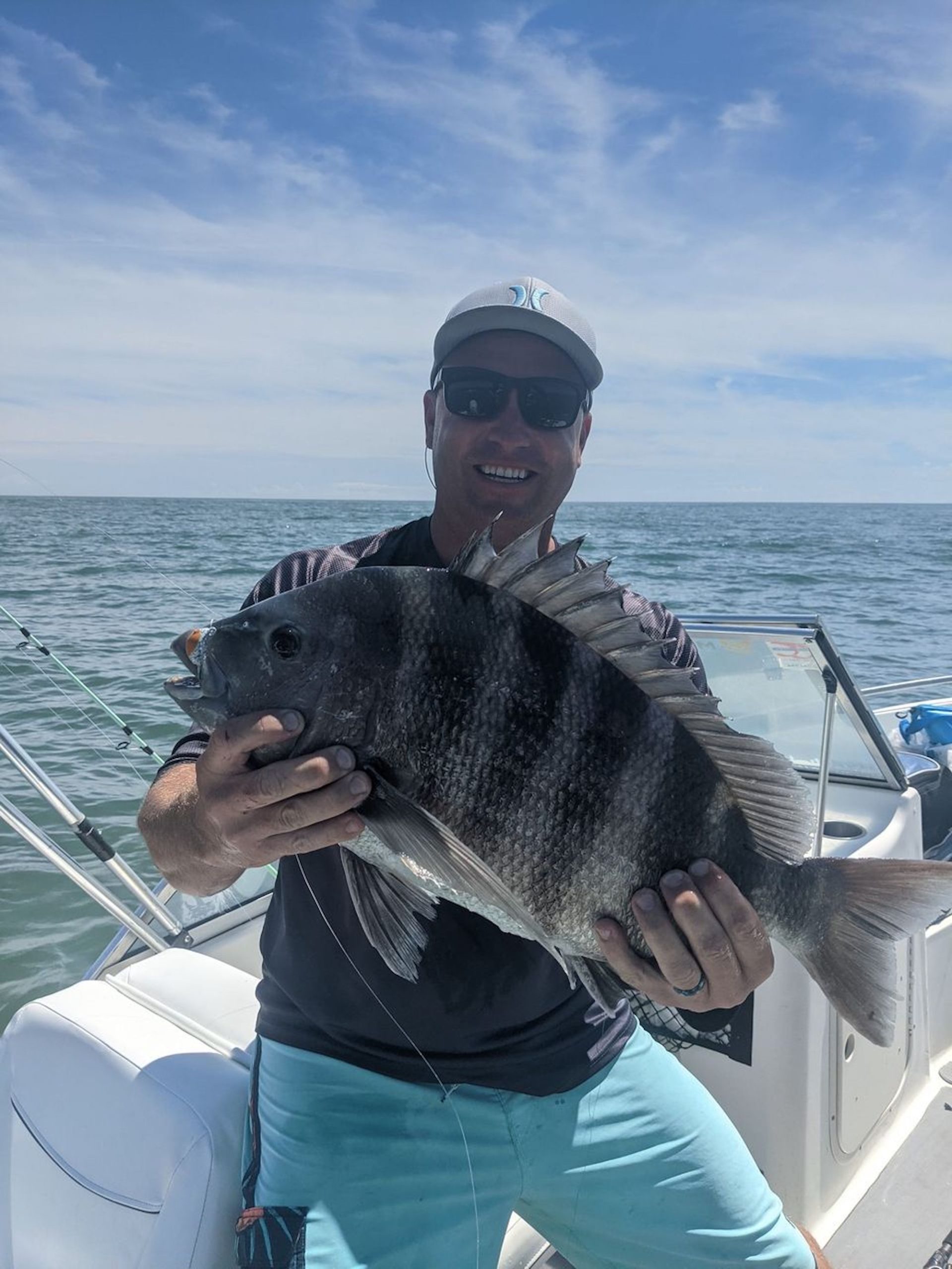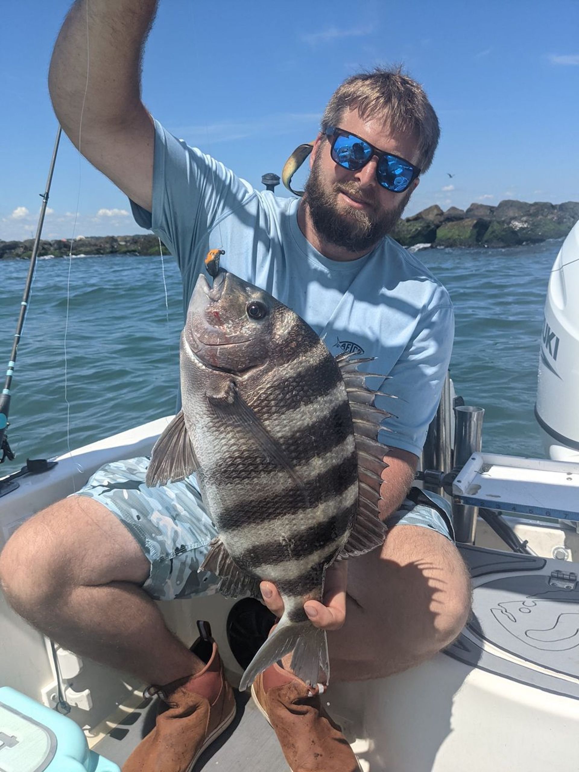 Outside of the tournament Blake Gunther and crew had an awesome day of fishing catching flounder and sheepshead. The flounder were caught on an inshore wreck and the sheepshead were caught on the south jetty on Fish in OC bottom/tog jigs.
