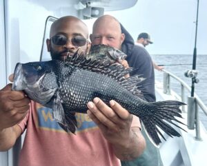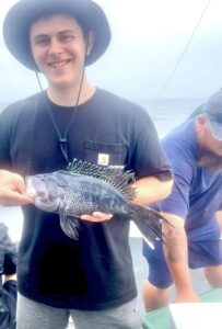 We have ‘rent fish’ from yesterday’s fantastic sea bass bite too. That is to say the folks who so generously allow us to clutter their West OC lot with blocks and pyramids for reef building won’t take a dime in land rent – but they do love fresh fish.