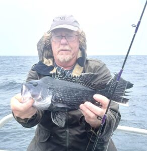 Captain Monty Hawkins of the Morning Star wants to see nicer weather too, but he’ll deal with it as long as some sea bass are biting.