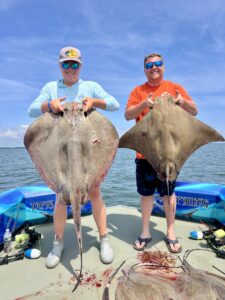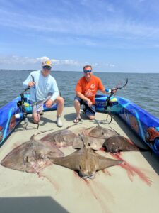 Captain Marc Spagnola of Dusk to Dawn Bowfishing was all over the rays in the south bay today for his shooters putting them on some big cow nosed and southerns.