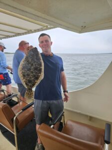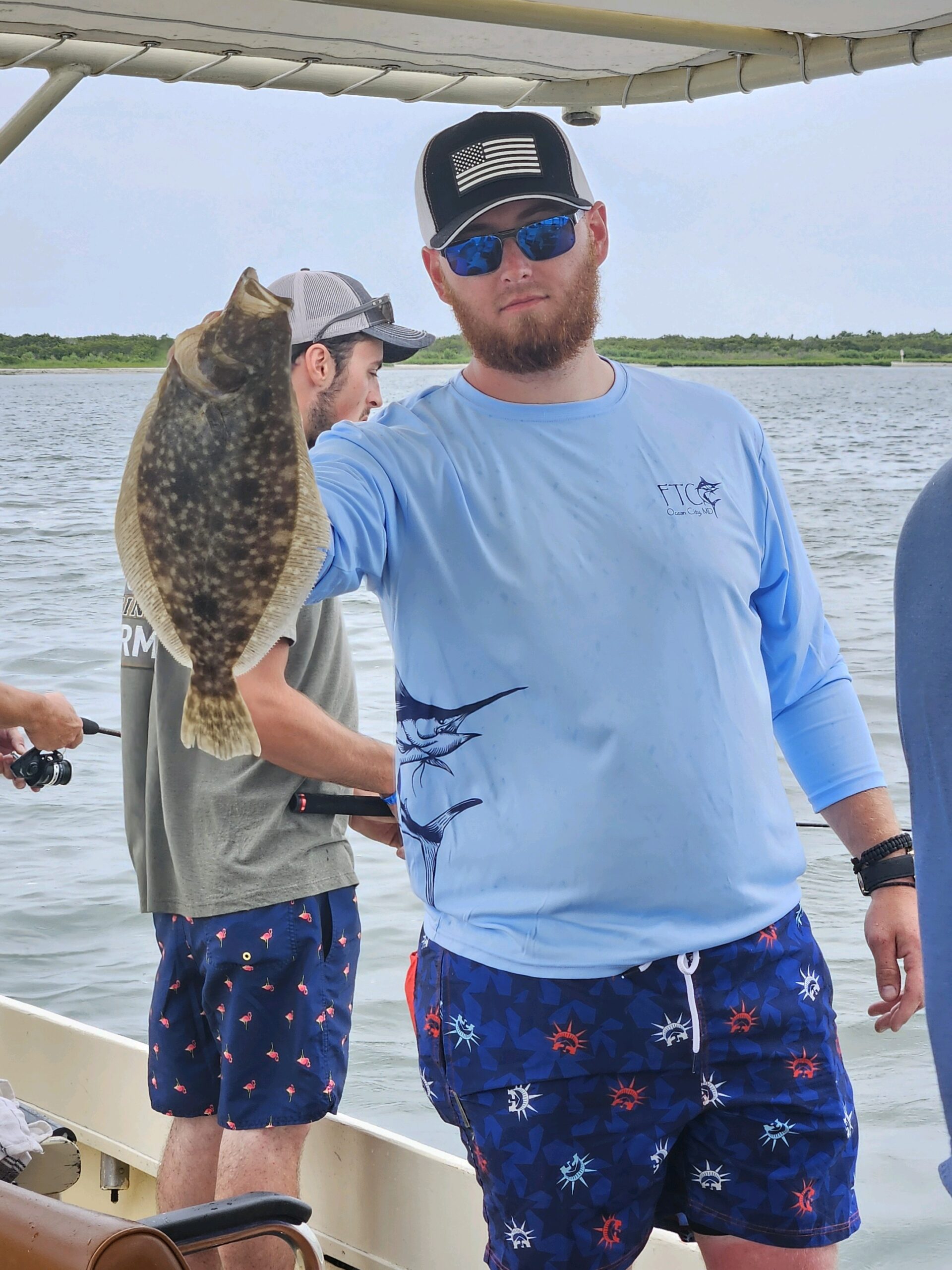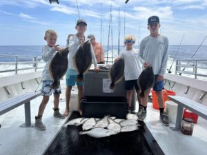 Anglers fishing on board Fish Bound with Captain Kane Bounds have been grinding it out with the tricky ocean conditions. The grind has been worth it and flounder and some sea bass are going home in coolers.